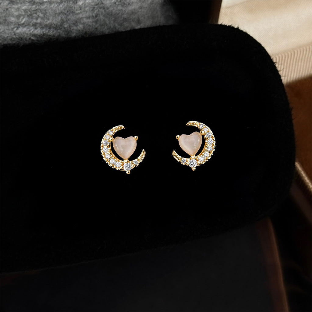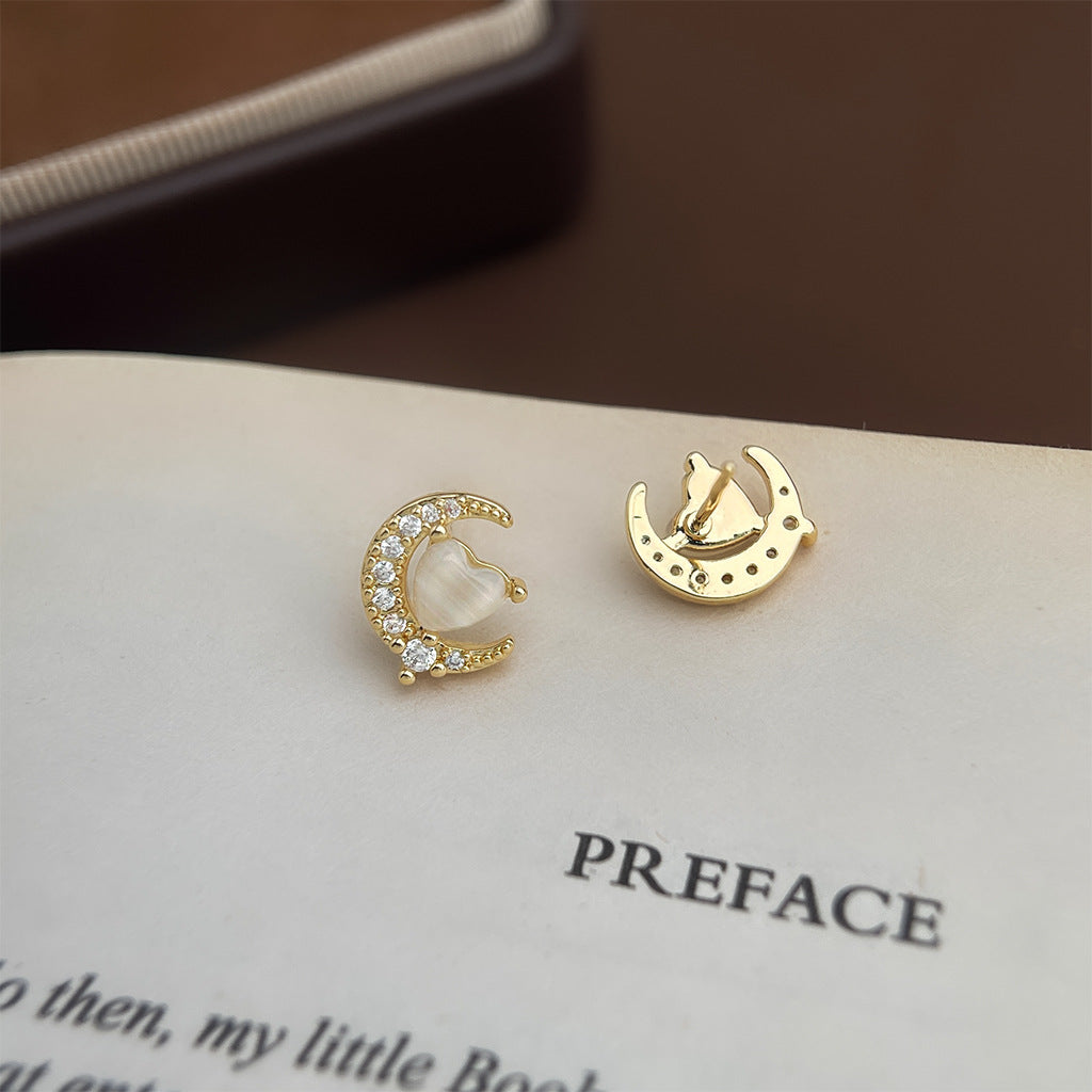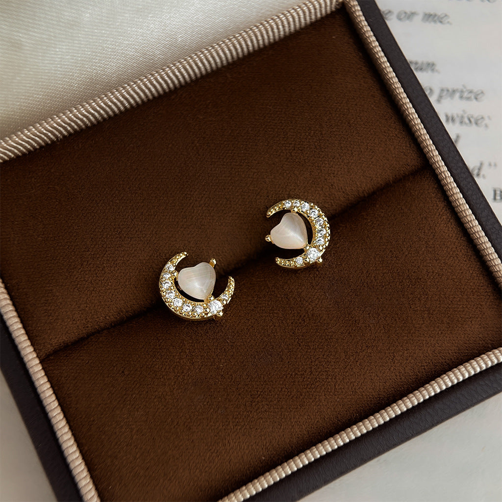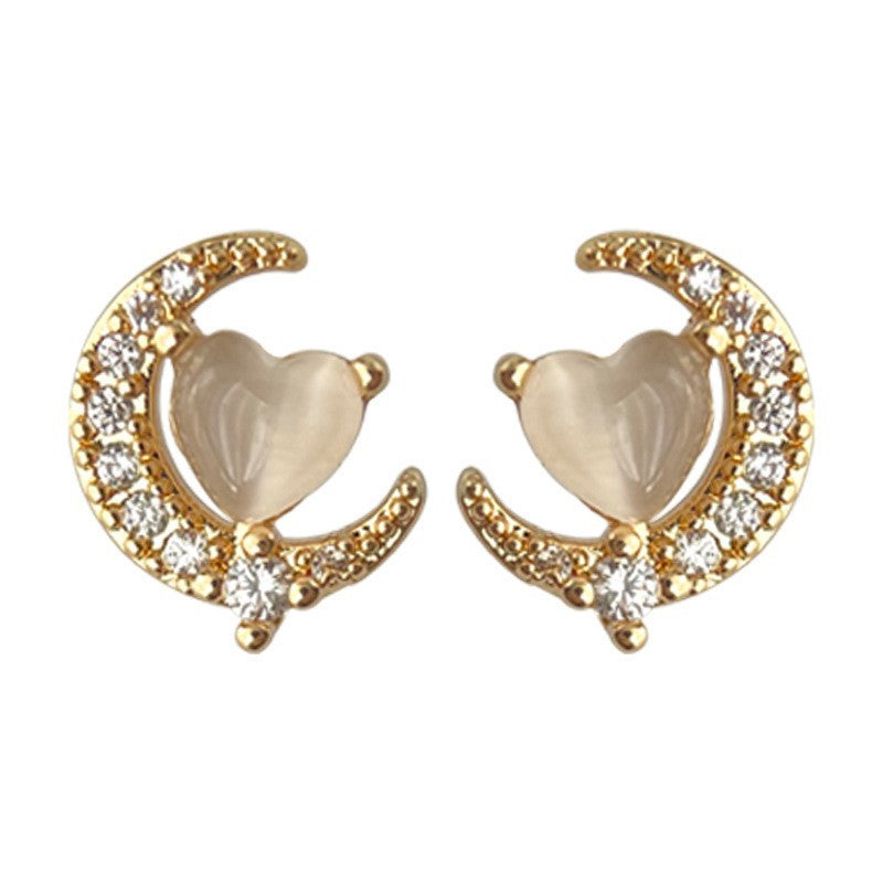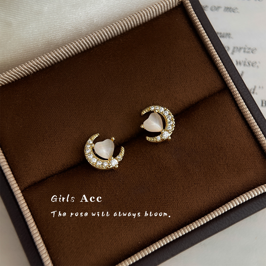 A2廠 日韓款氣質月亮玻璃貓眼石銀針耳環 批發 折扣@洽客服 25.12.W1「4408」