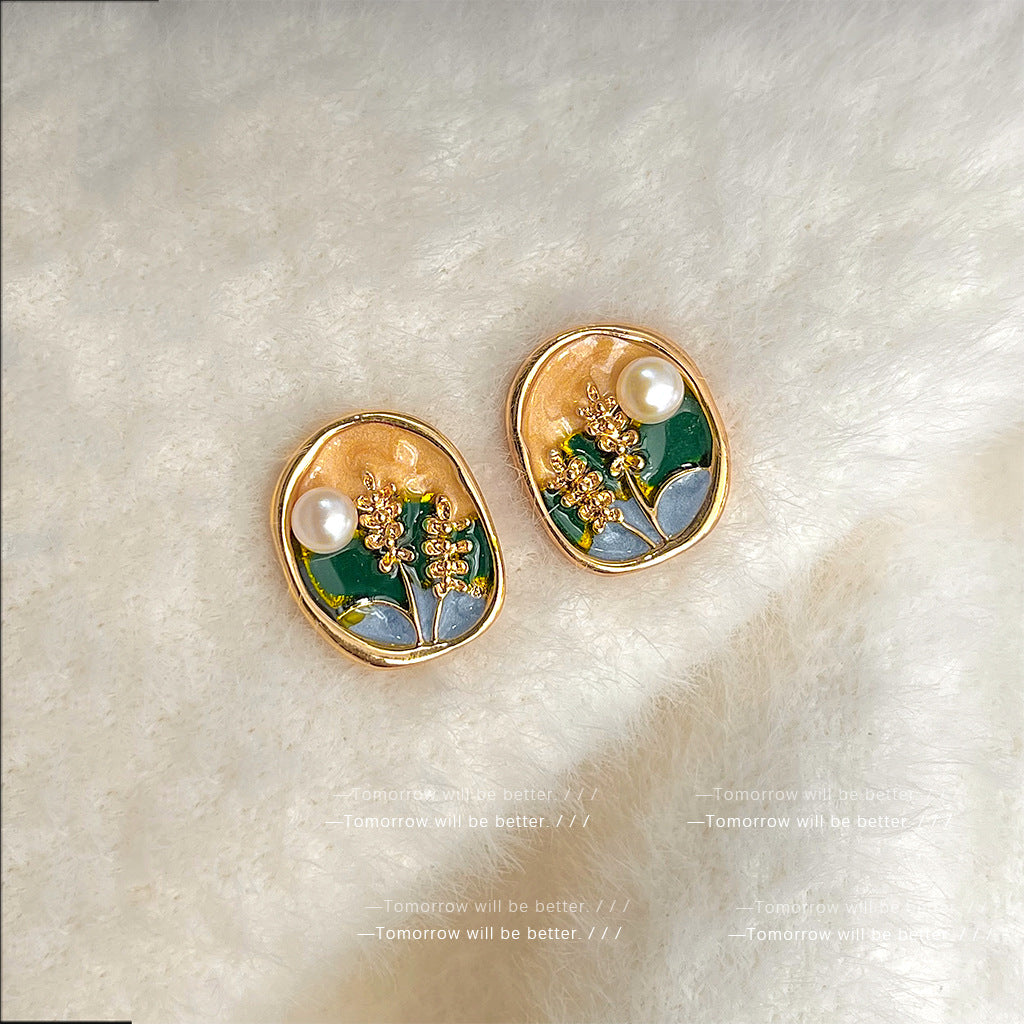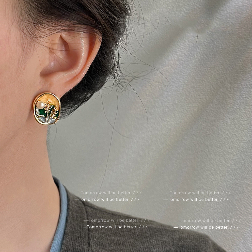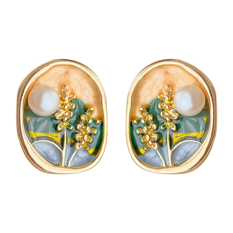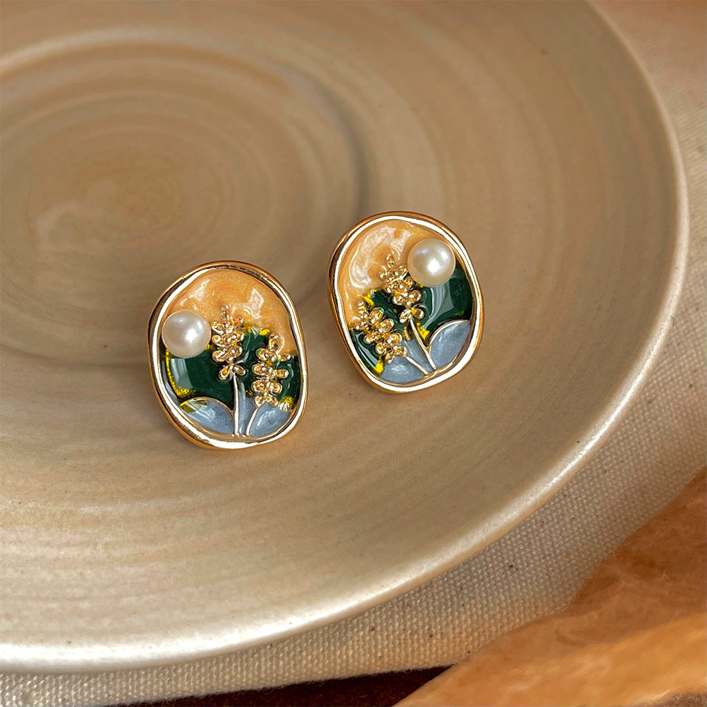 A廠 日韓款 莫內花園油畫感滴油銀針耳環 批發 折扣@洽客服 25.11.W2「4828」