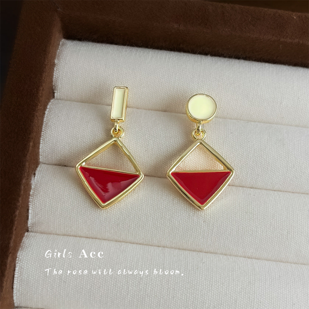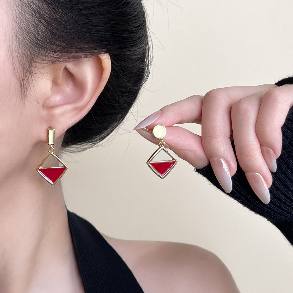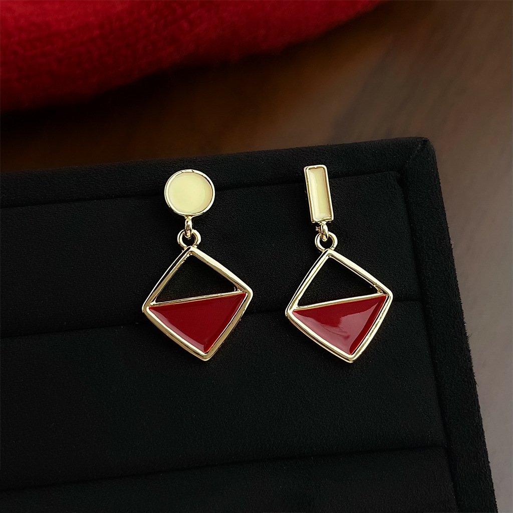 A廠 日韓款紅撞色滴釉銀針耳環 批發 折扣@洽客服 25.12.W2「5028」