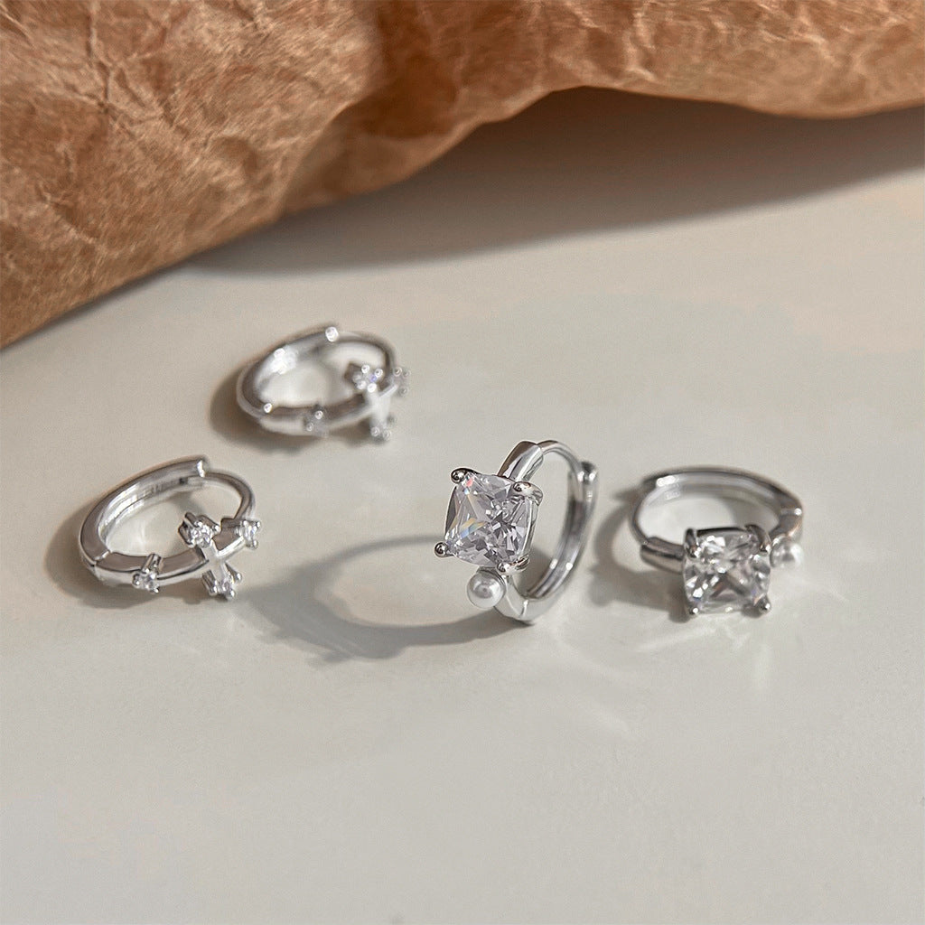 A廠 日韓款方糖鋯石/十字架銀針耳環批發 折扣@洽客服 26.04.W3「5045-5046」