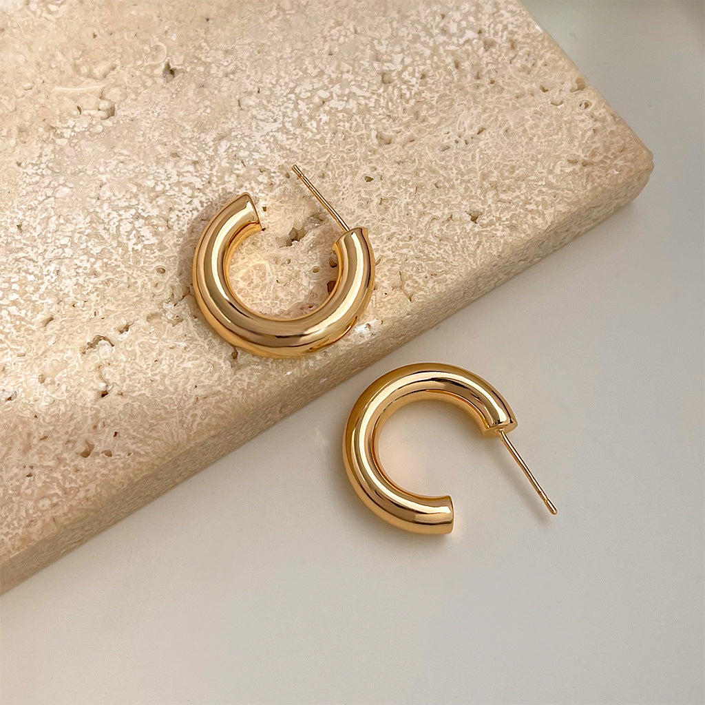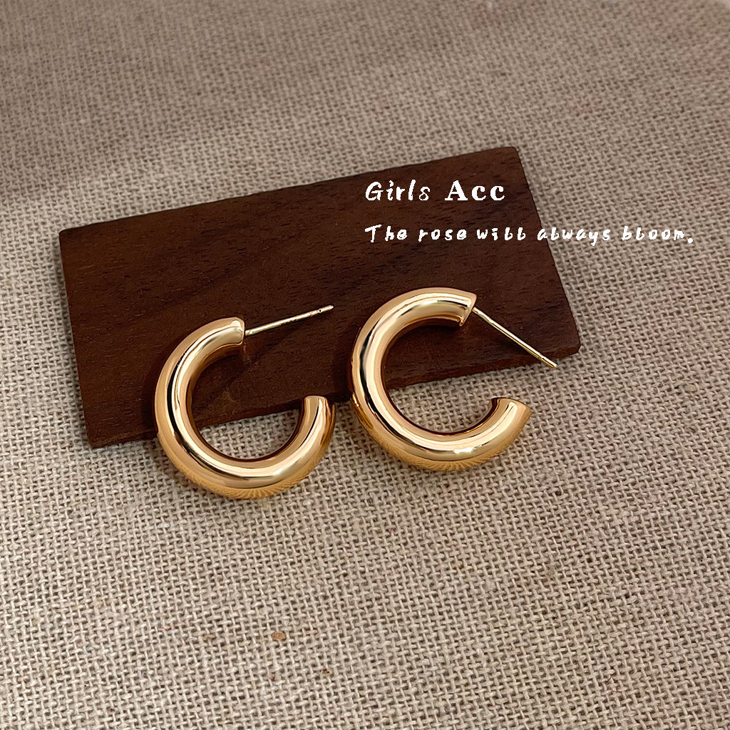 A廠 韓國韓版C型光面素圈銀針耳環 飾品批發 折扣@洽客服 25.10.W1「5187」