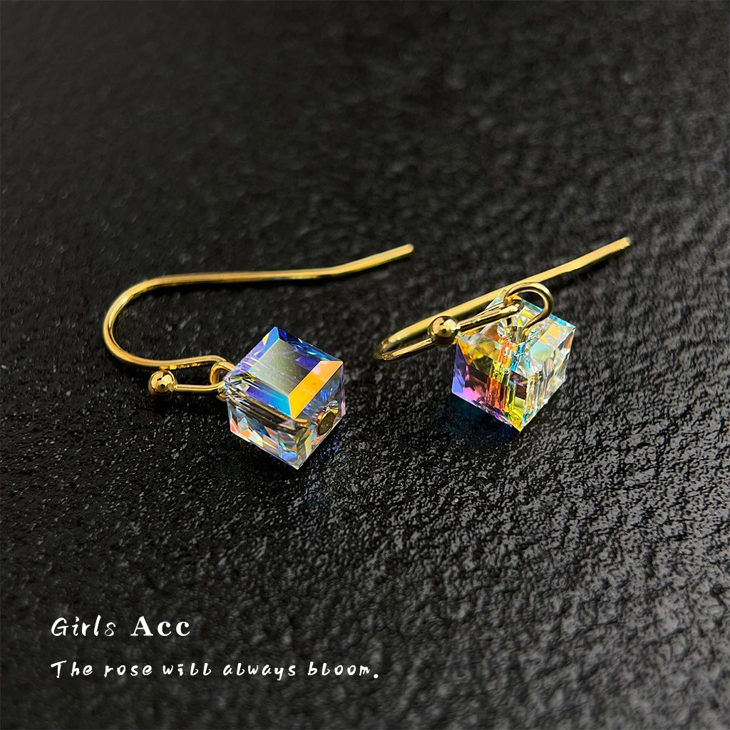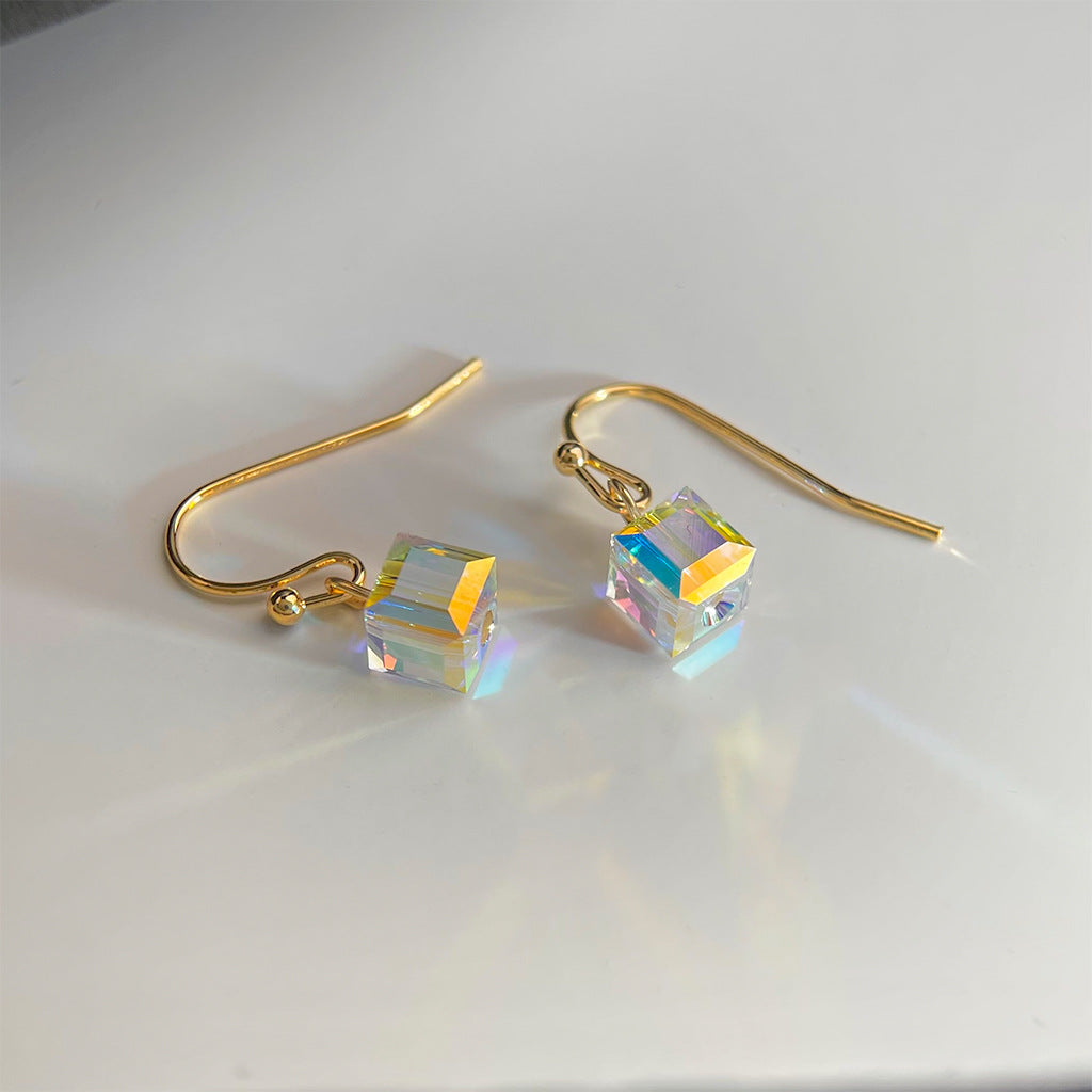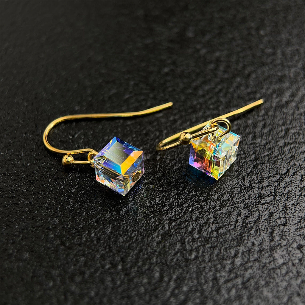 A廠 日韓款 魔方奧地利水晶銅鍍14K金銀針耳環 批發 折扣@洽客服 25.08.W5「5555」