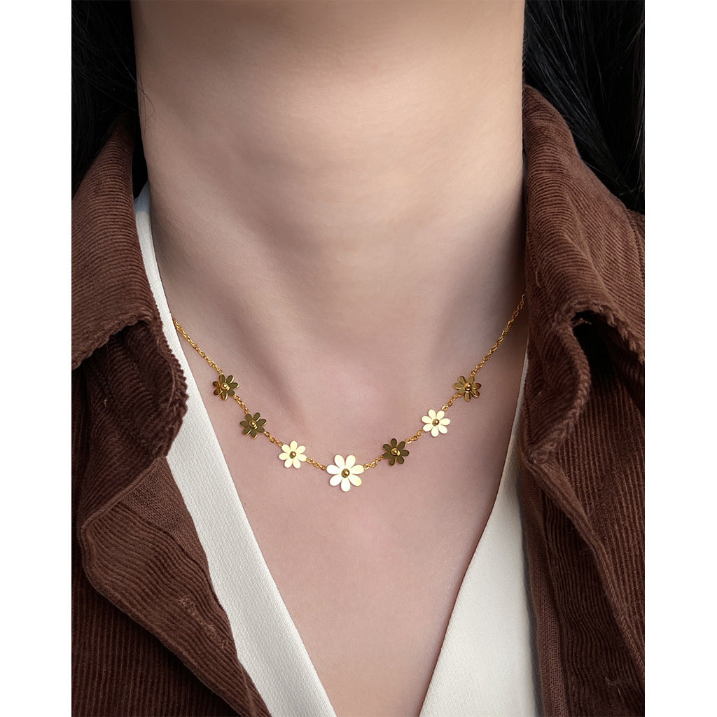 A廠 日韓款小雛菊花朵鈦鋼鍍18K金項鍊 批發 折扣@洽客服 25.12.W2「5655」