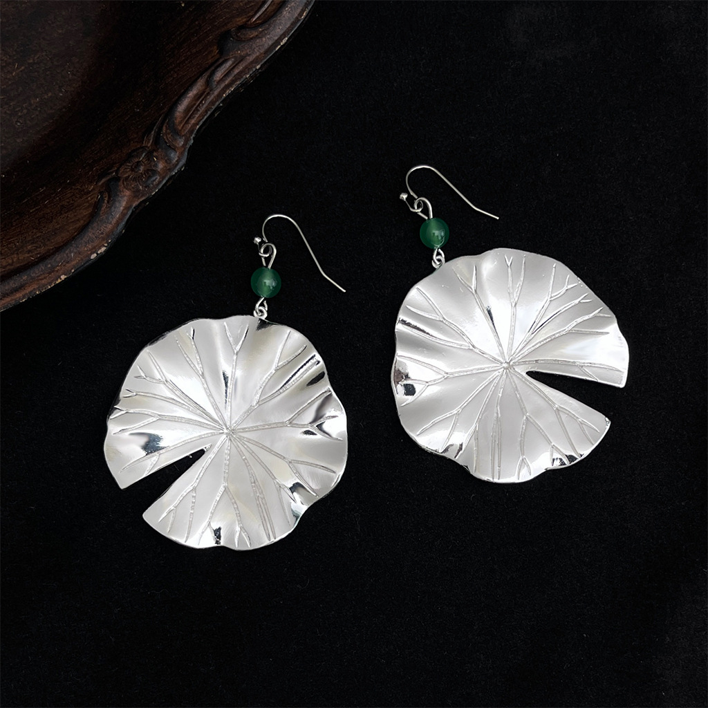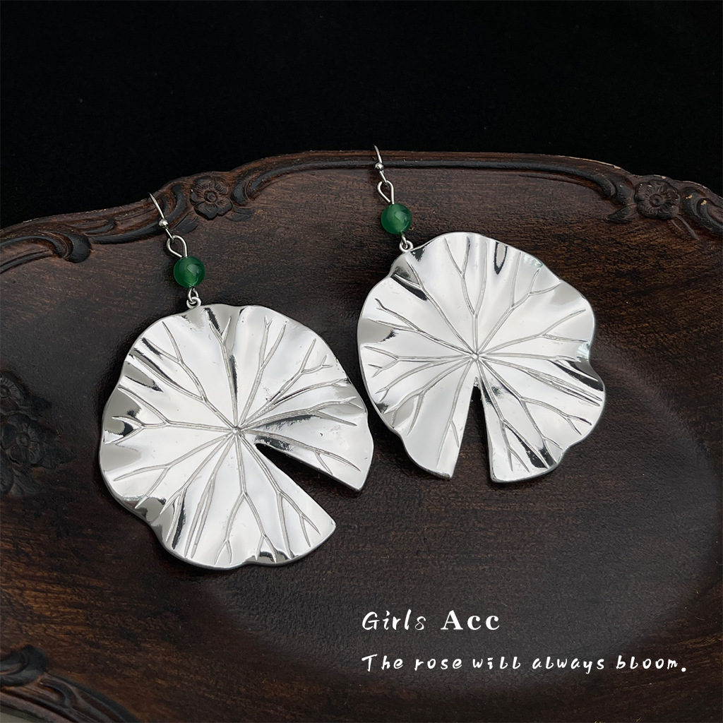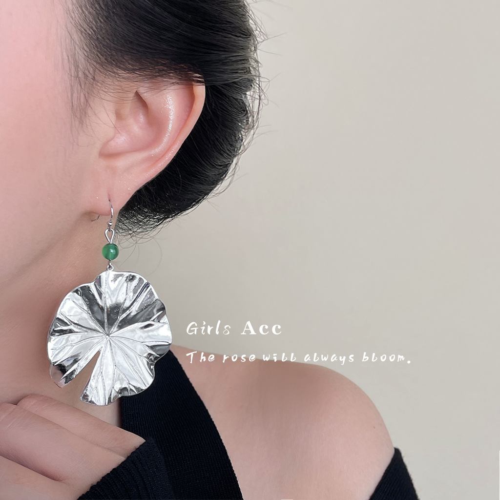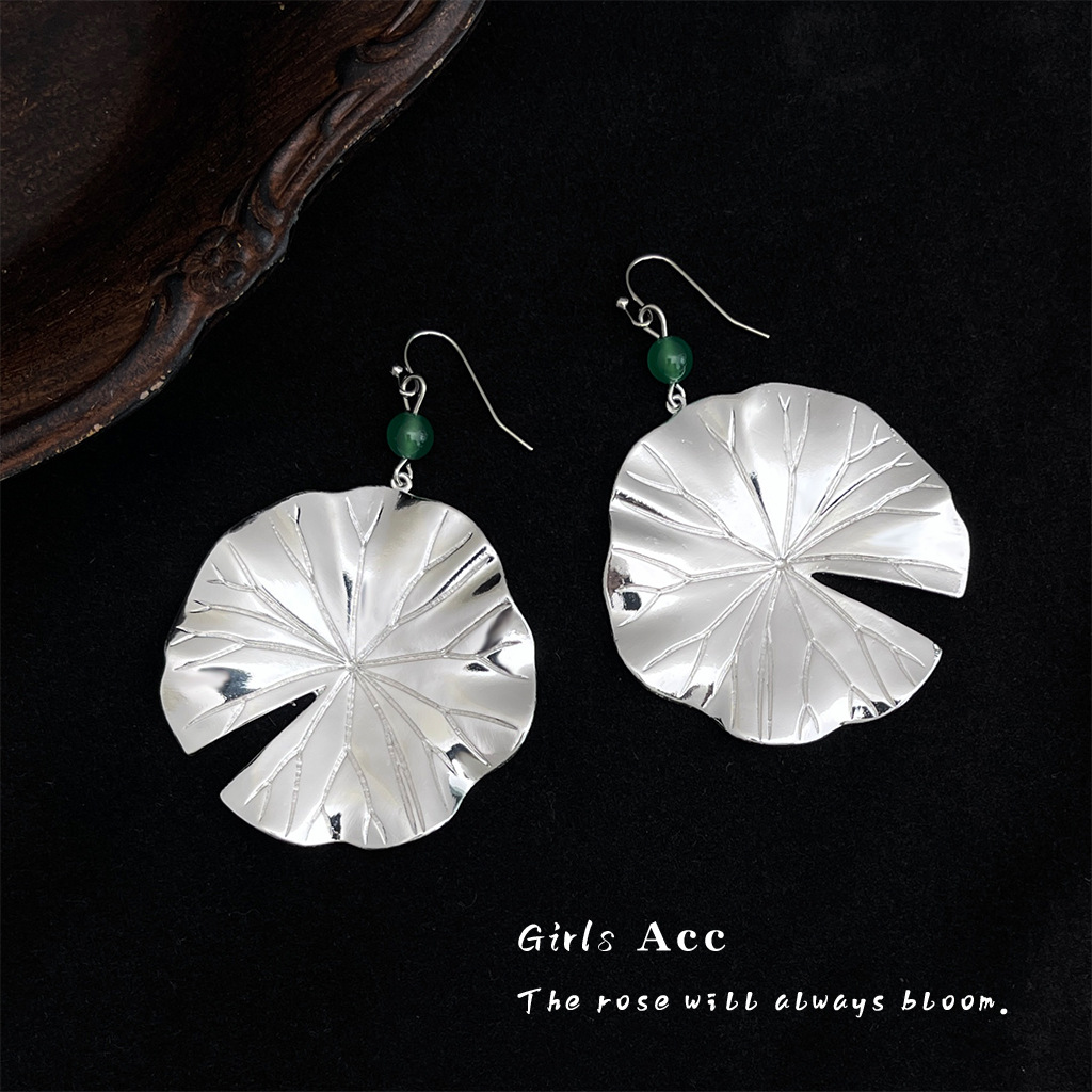 A廠 日韓款 文藝復古新中式荷葉銀針耳環 批發 折扣@洽客服 25.11.W2「6025」