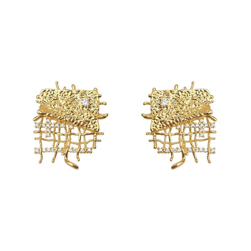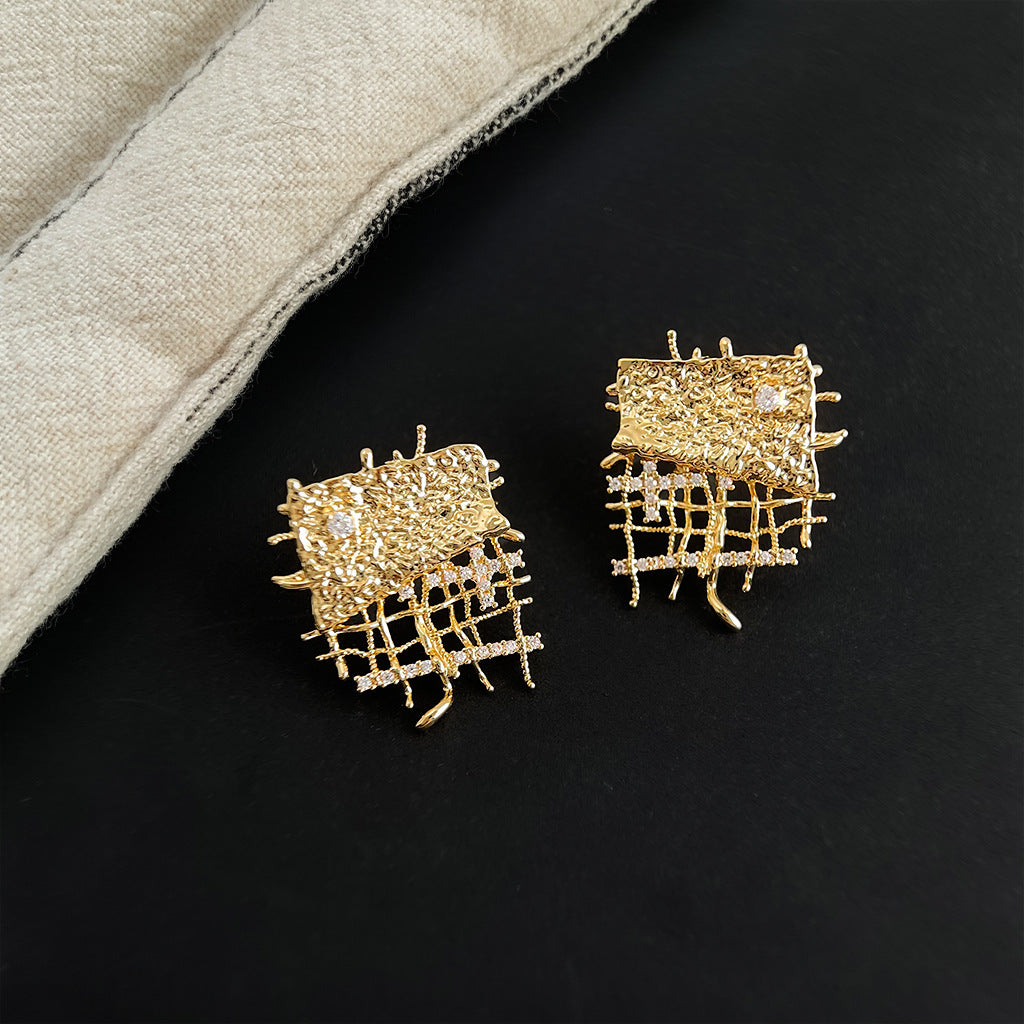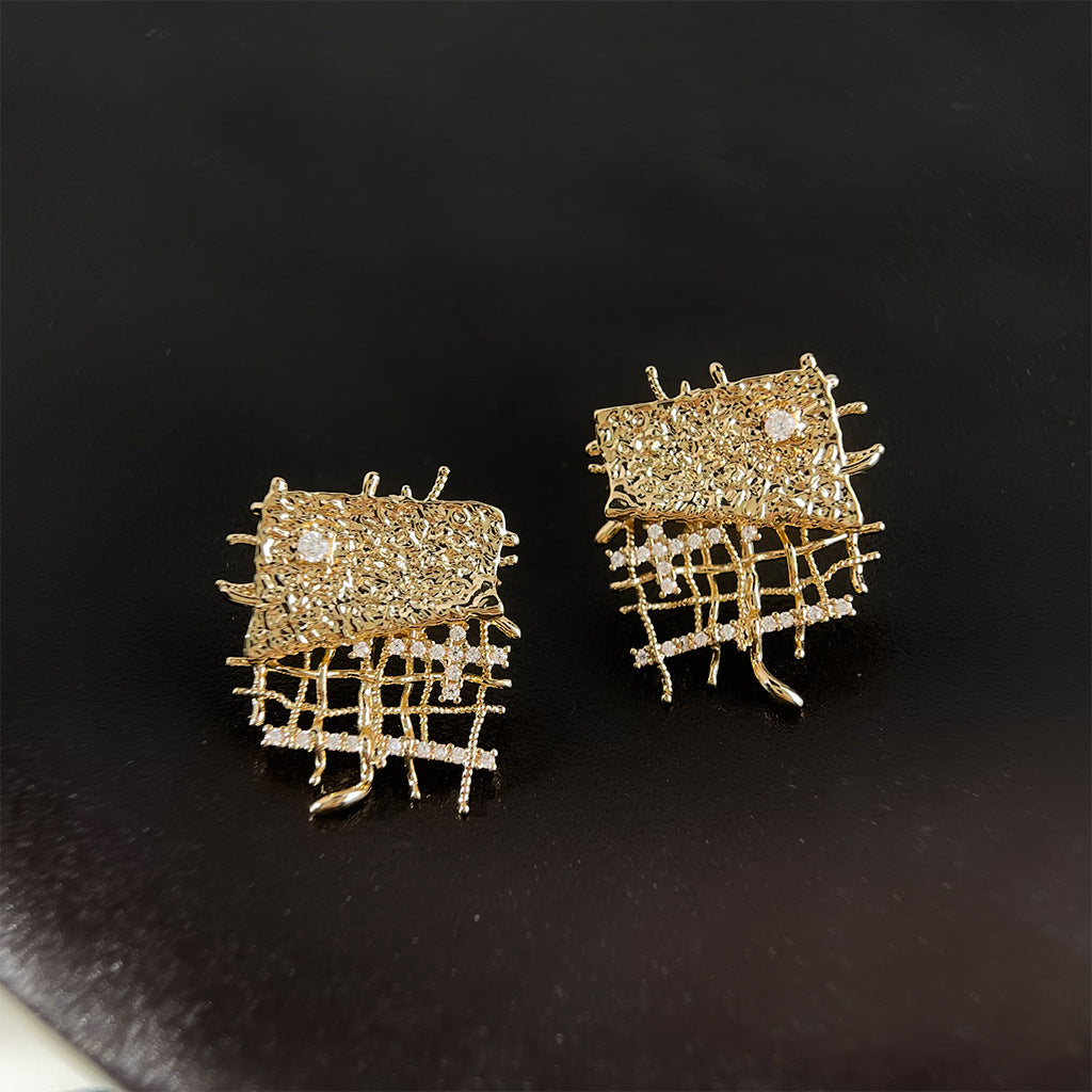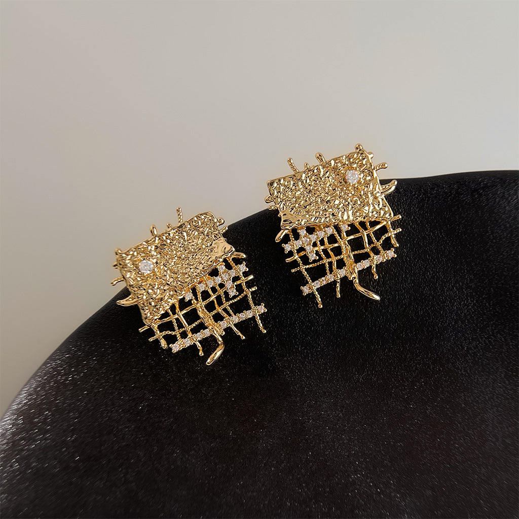 A廠 日韓款 時尚網狀編織鋯石銀針耳環 批發 折扣@洽客服 25.09.W4「6512」