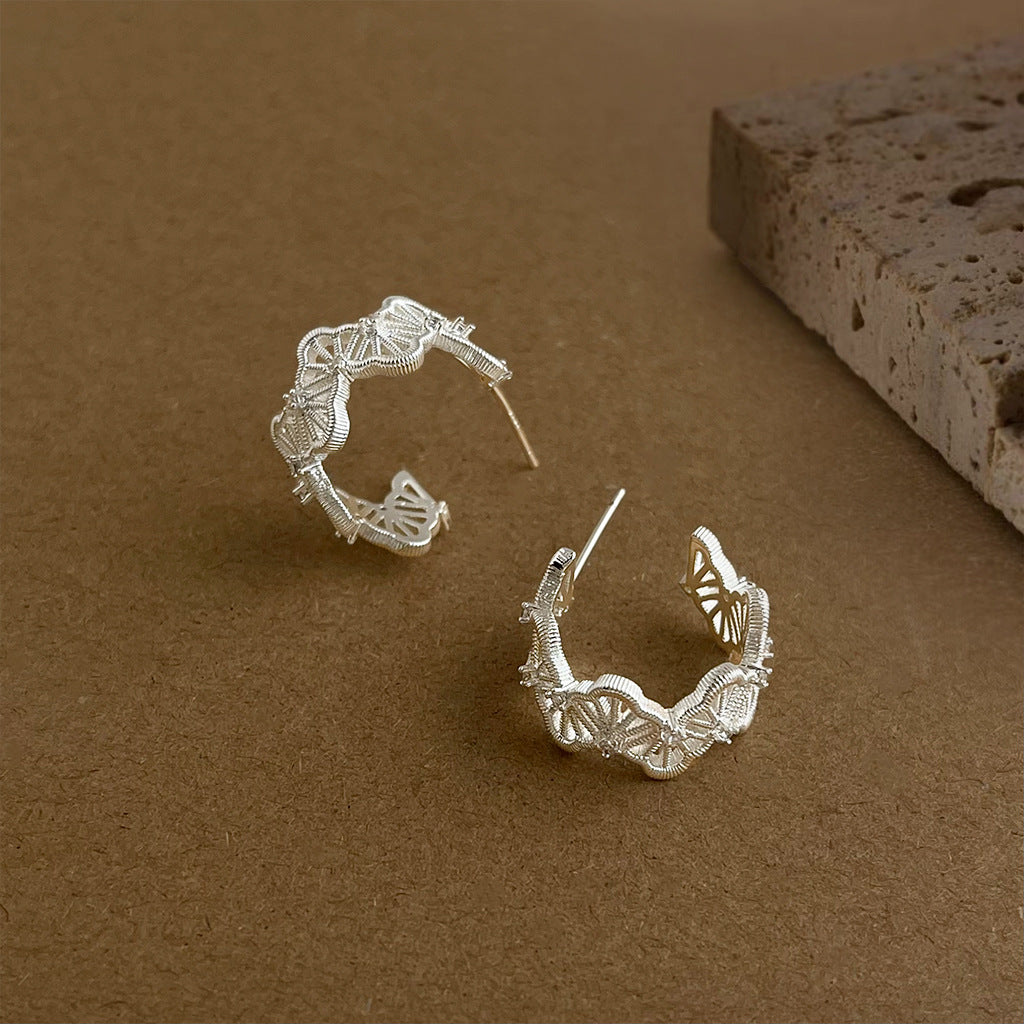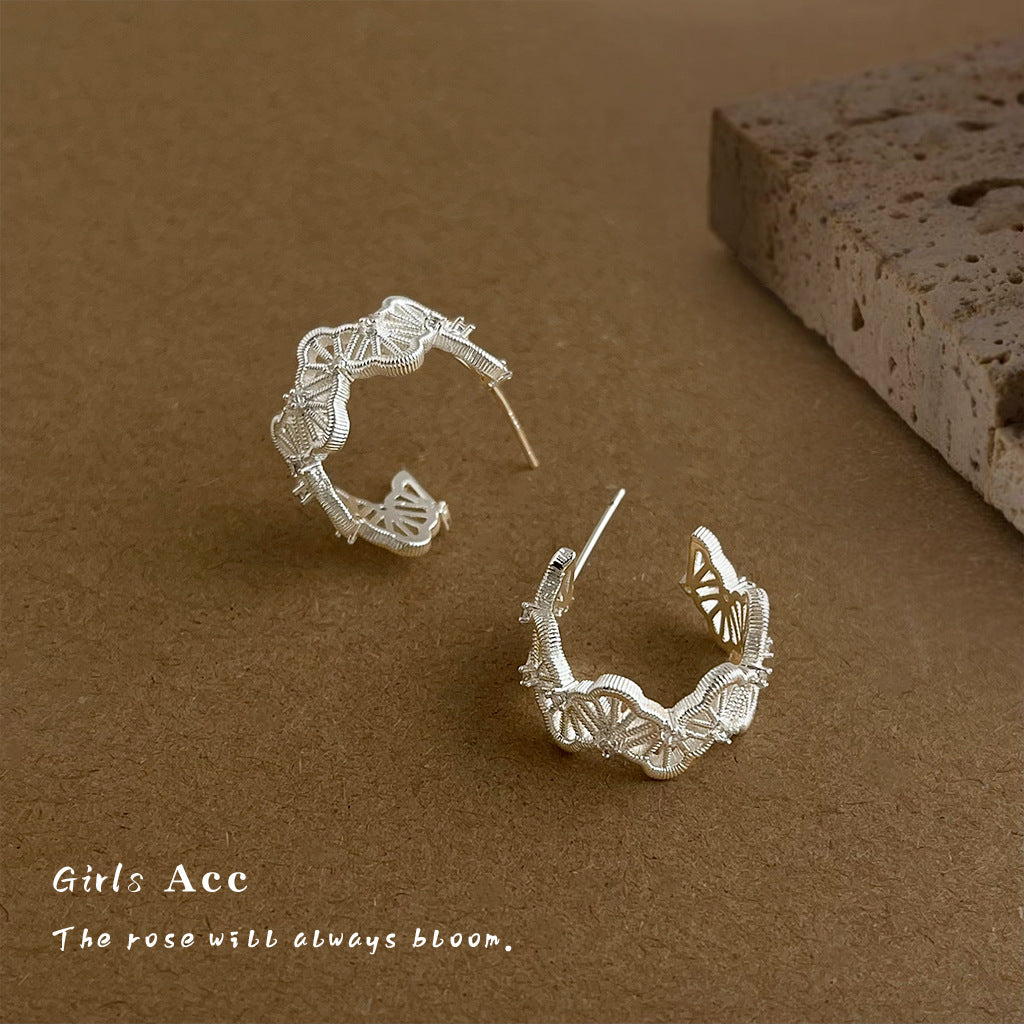 A廠 日韓款 小香風鏤空蕾絲蕾絲銀針耳環 批發 折扣@洽客服 25.09.W2「6540」