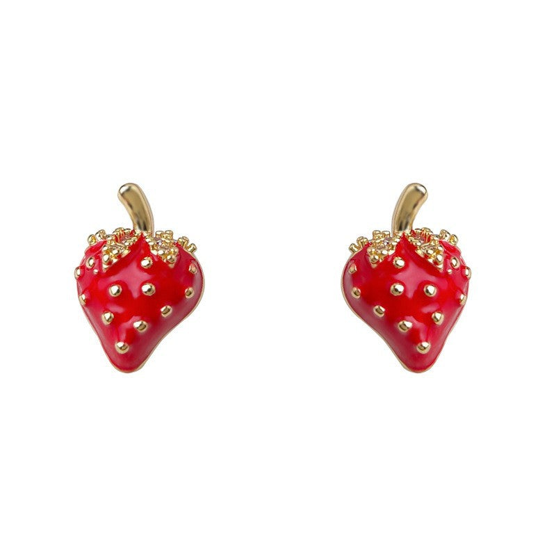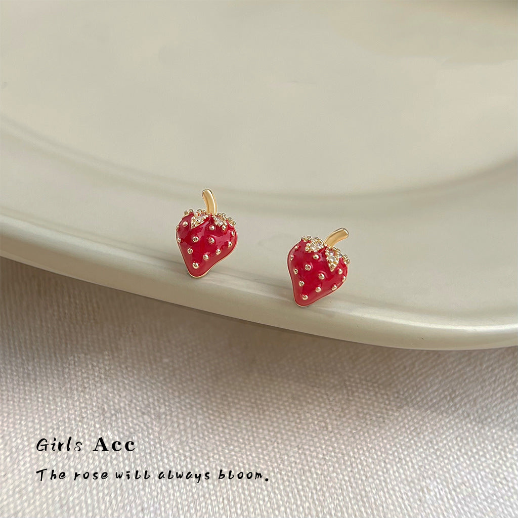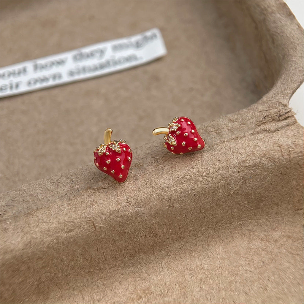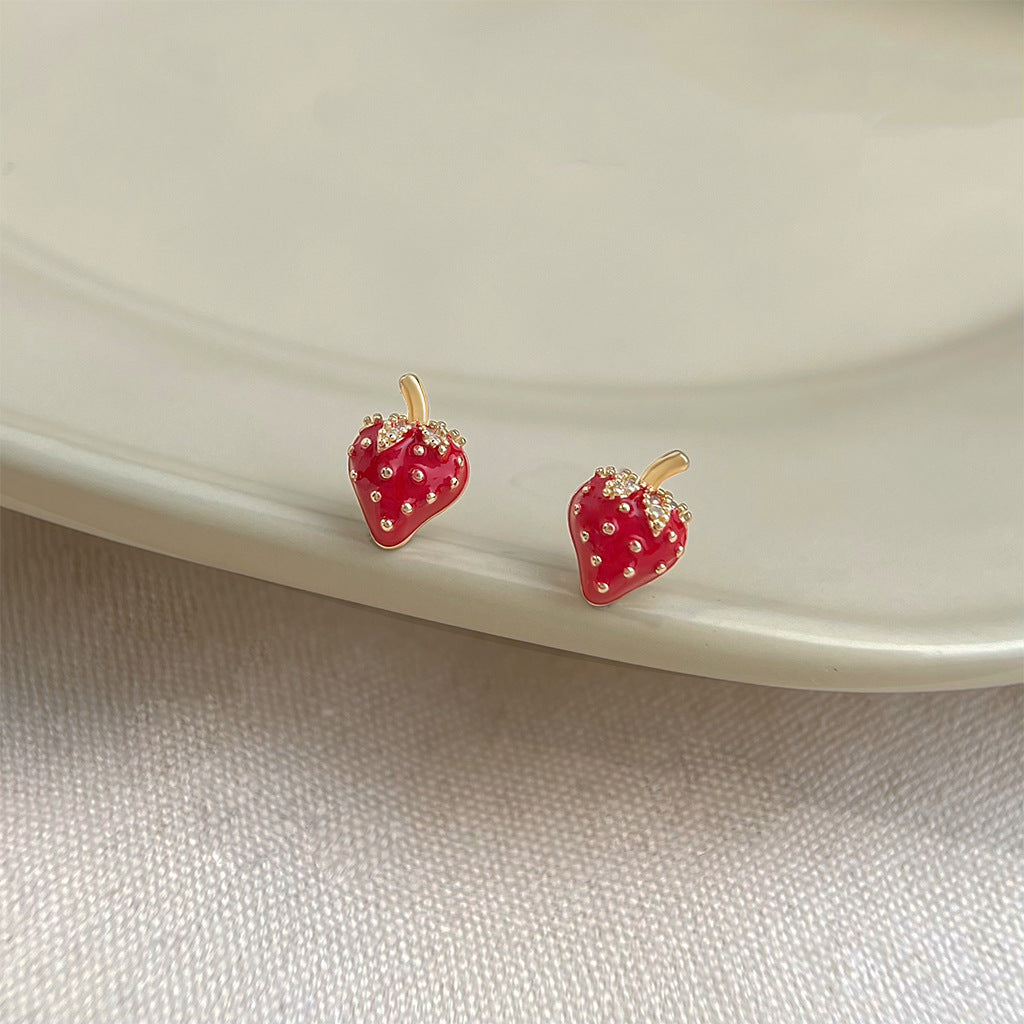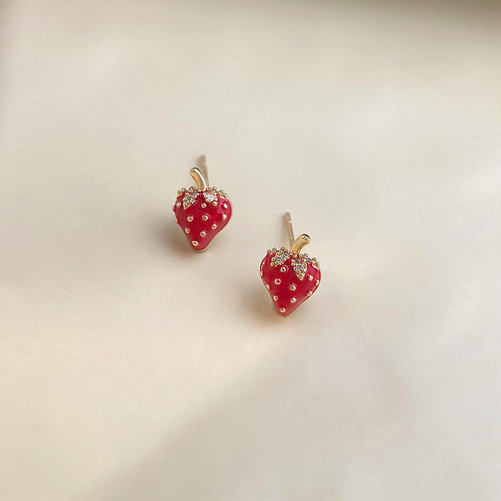 A廠 日韓款 小清新滴油草莓銀針耳環 批發 折扣@洽客服 25.09.W2「6570」