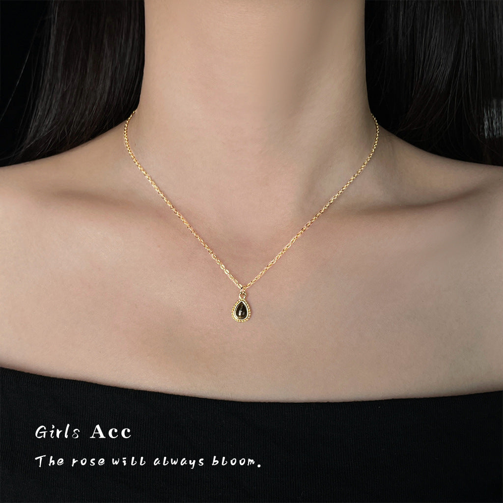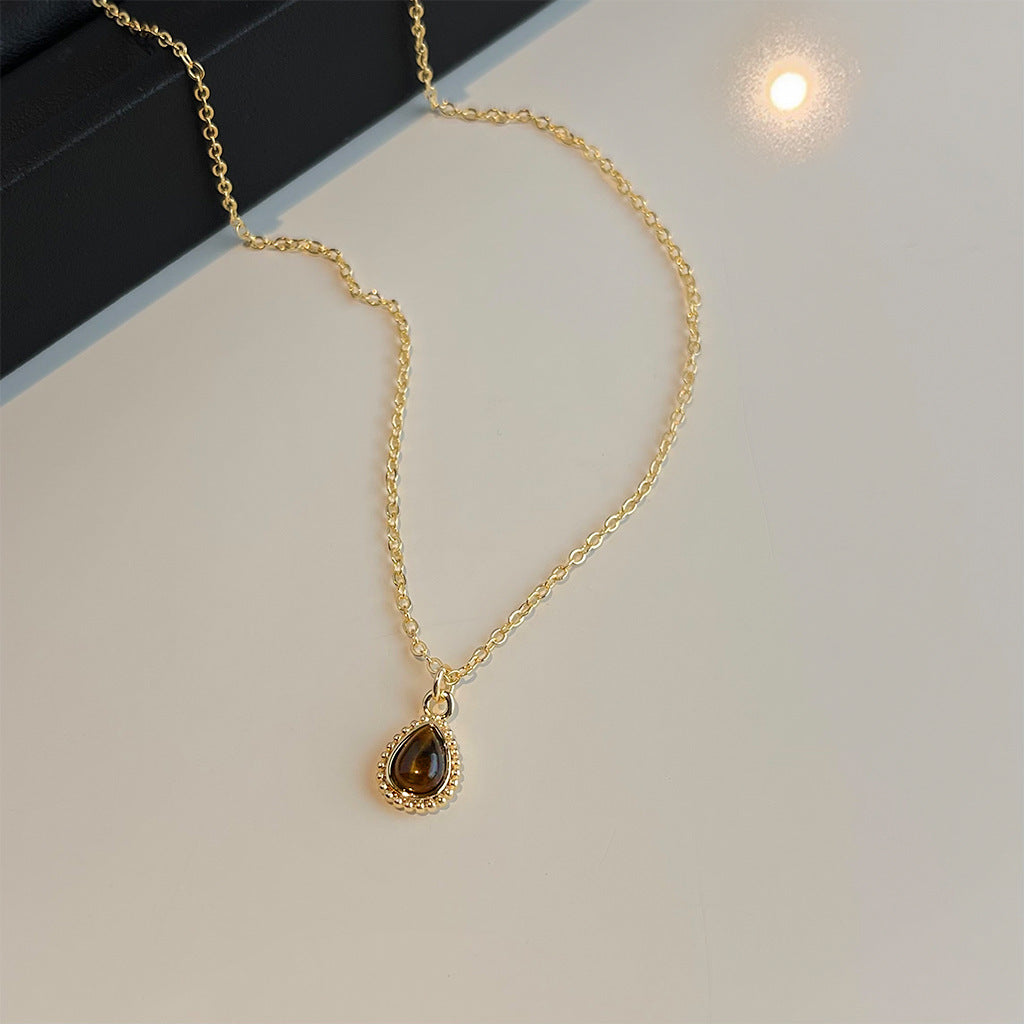 A廠 韓國韓版復古虎眼石水滴形項鍊 飾品批發 折扣@洽客服 25.10.W1「6626」