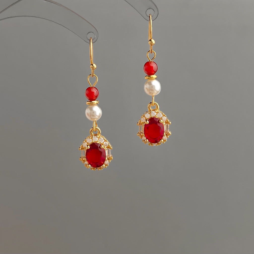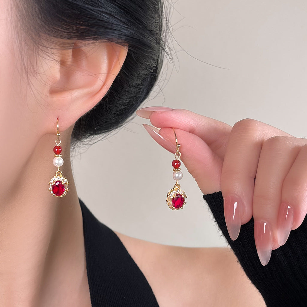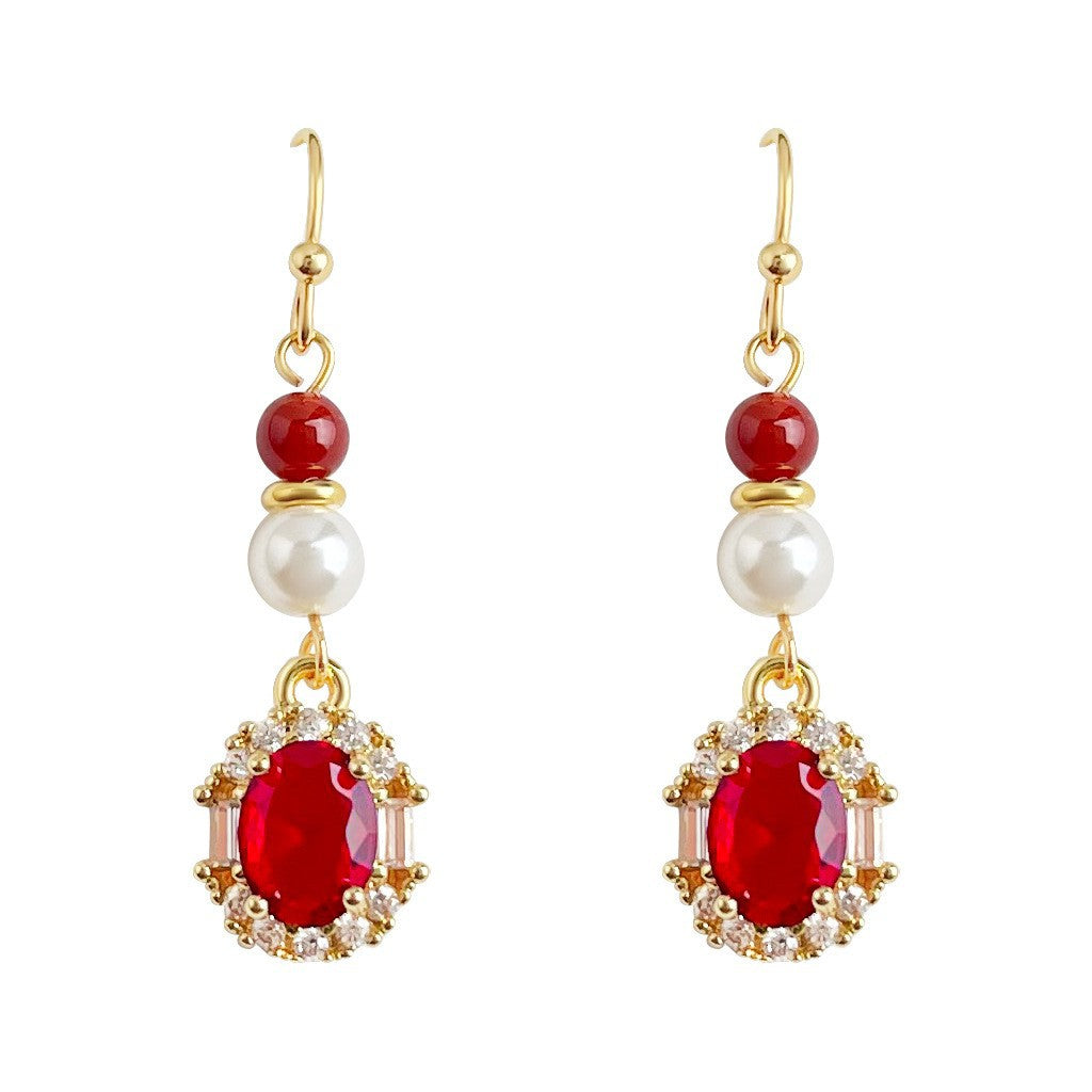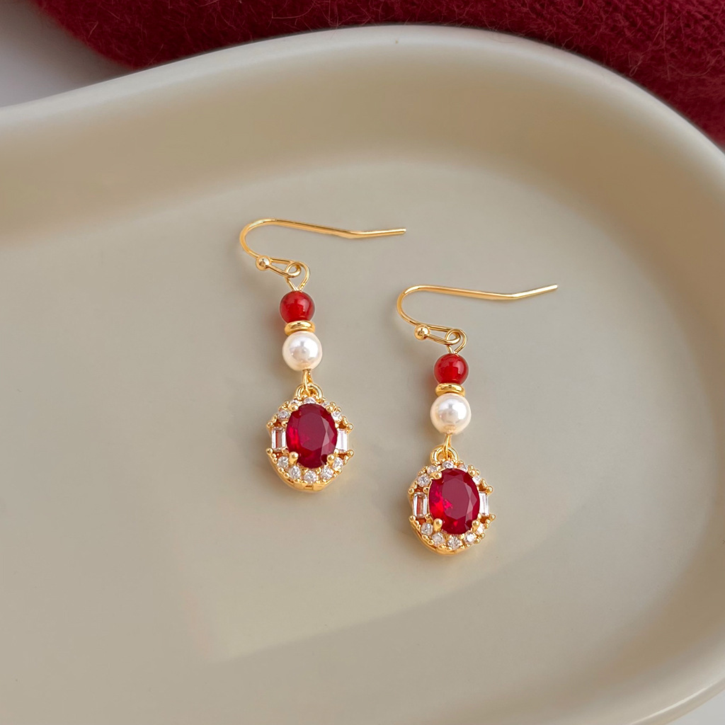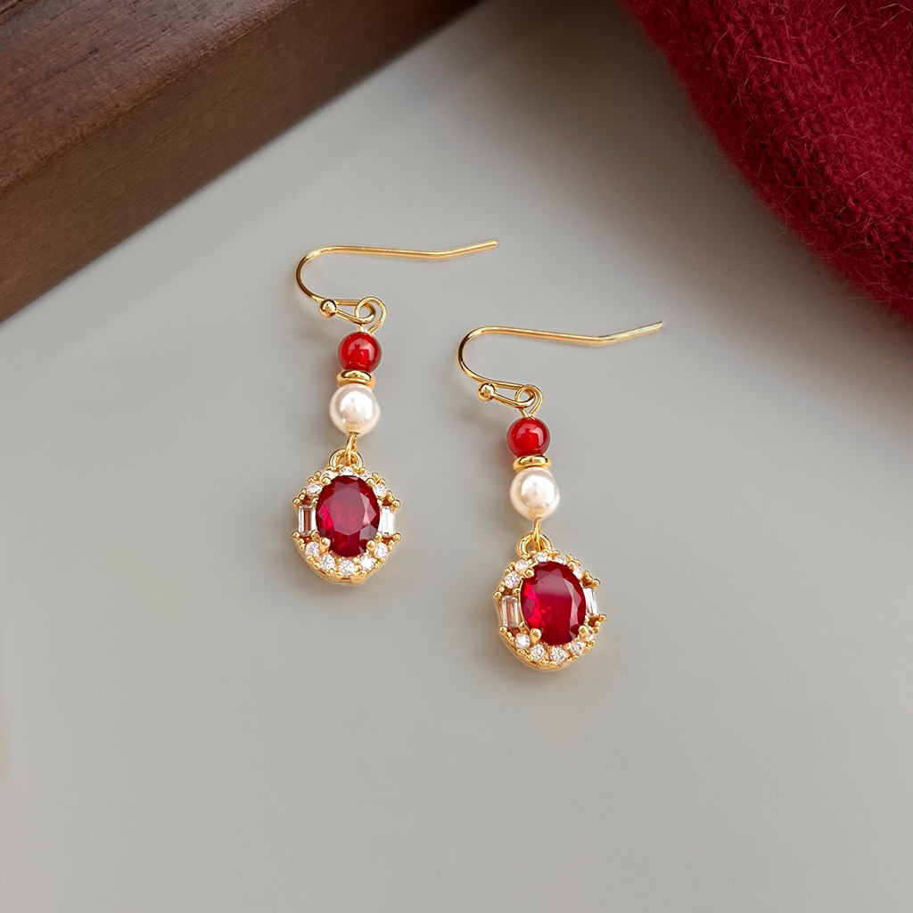 A廠 日韓款復古酒紅鋯石珍珠耳環 批發 折扣@洽客服 26.01.W1「7028」