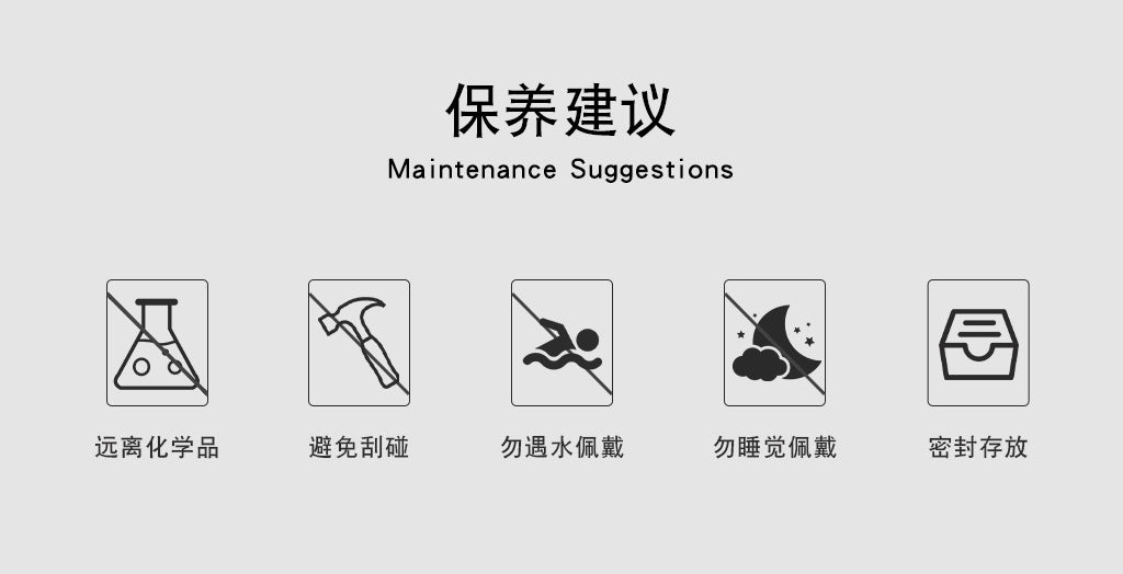 - 配戴著游泳、洗澡、泡溫泉,沖水後沒有保持乾燥等等。若有洗手需求,建議將飾品暫時取下,或是於洗手後儘速擦乾,保持乾燥。洗澡時則建議取下;若不慎接觸以上物質時,則可用乾布盡快擦拭避免殘留傷害金屬表面。
