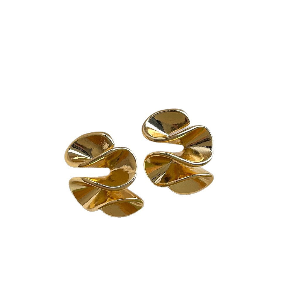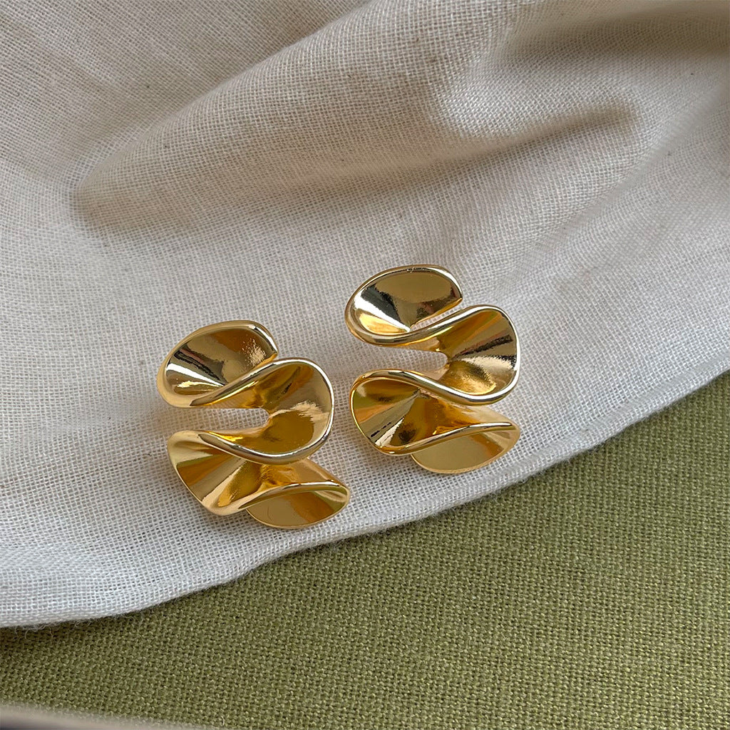 A廠 日韓款幾何褶皺鍍18k真金耳環 批發 折扣@洽客服 26.01.W1「7046」