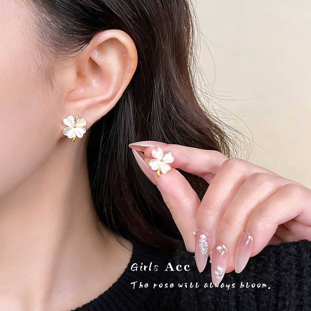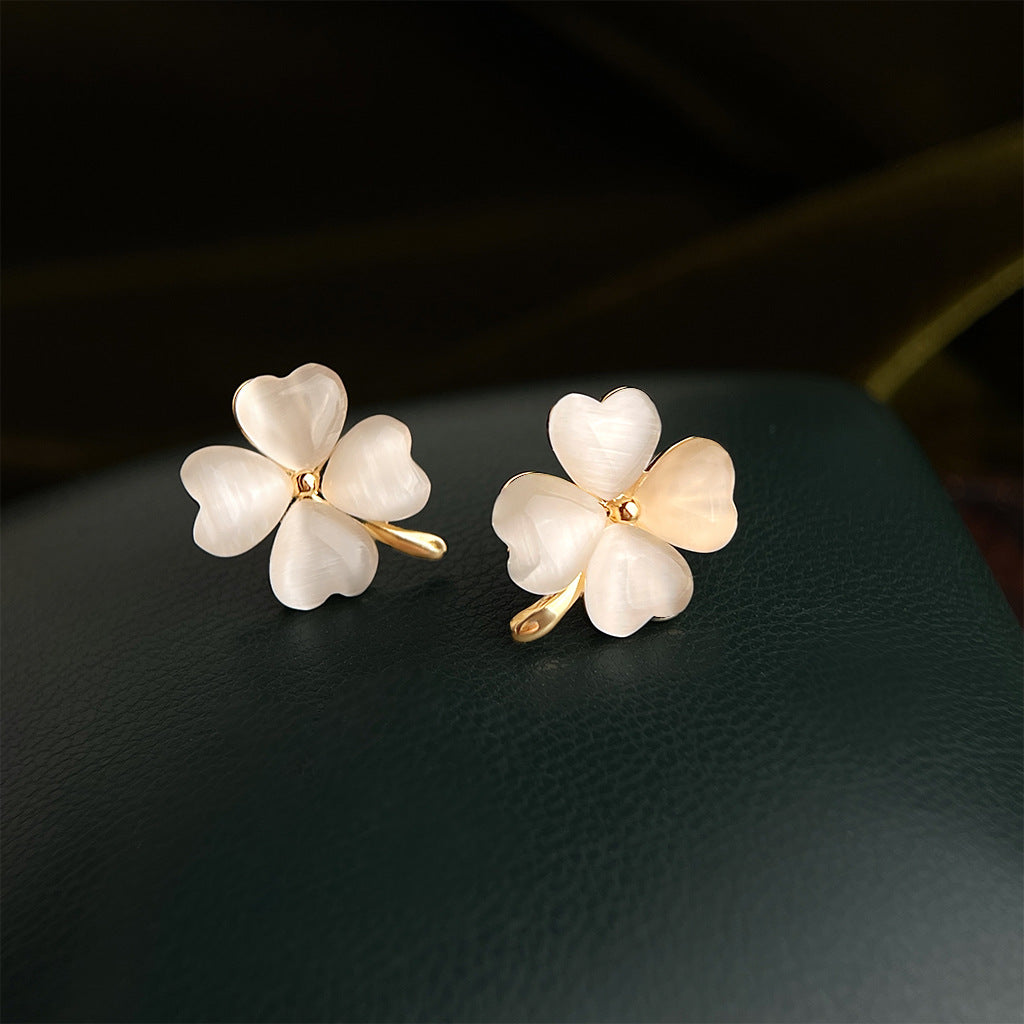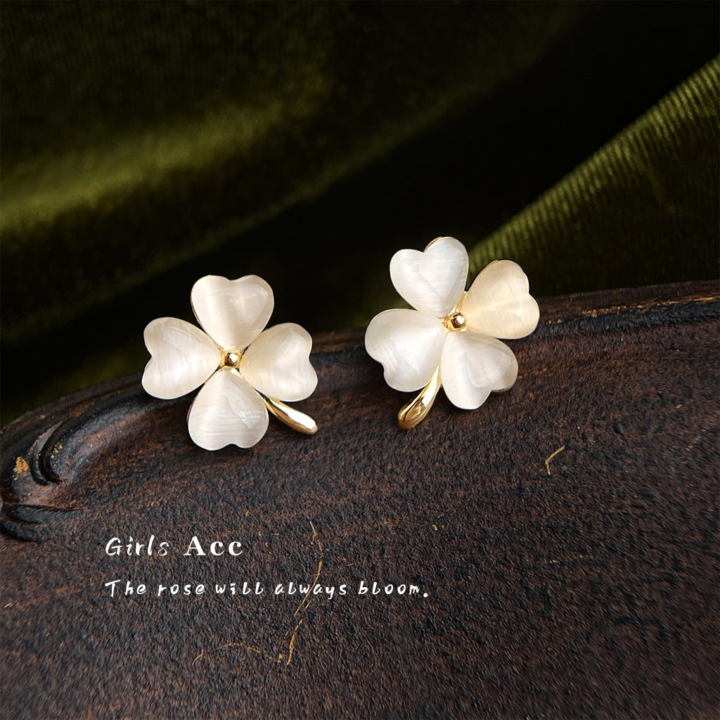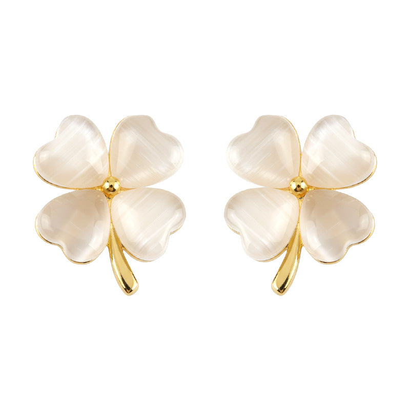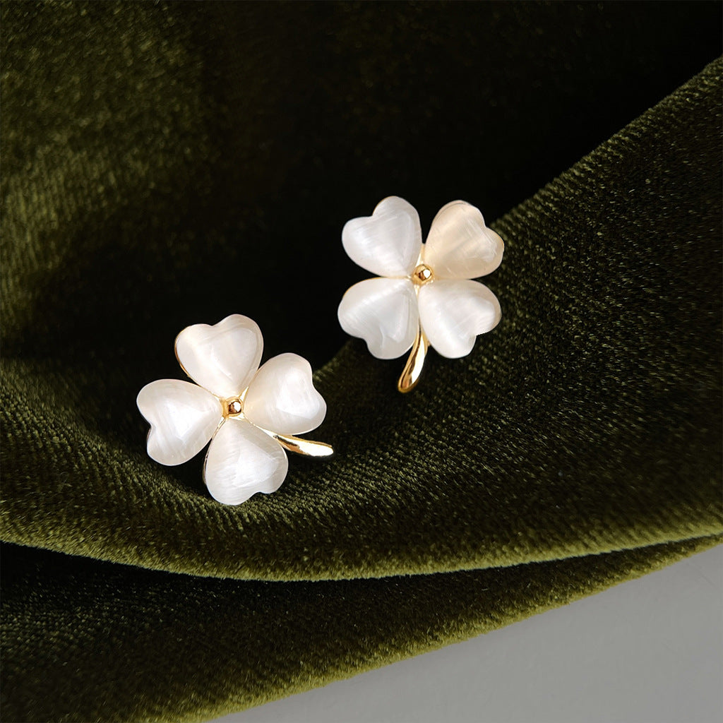 A廠 日韓款玻璃貓眼石四葉花銀針耳環批發 折扣@洽客服 26.04.W3「7316」