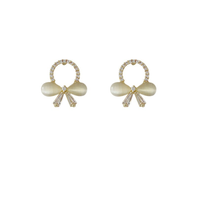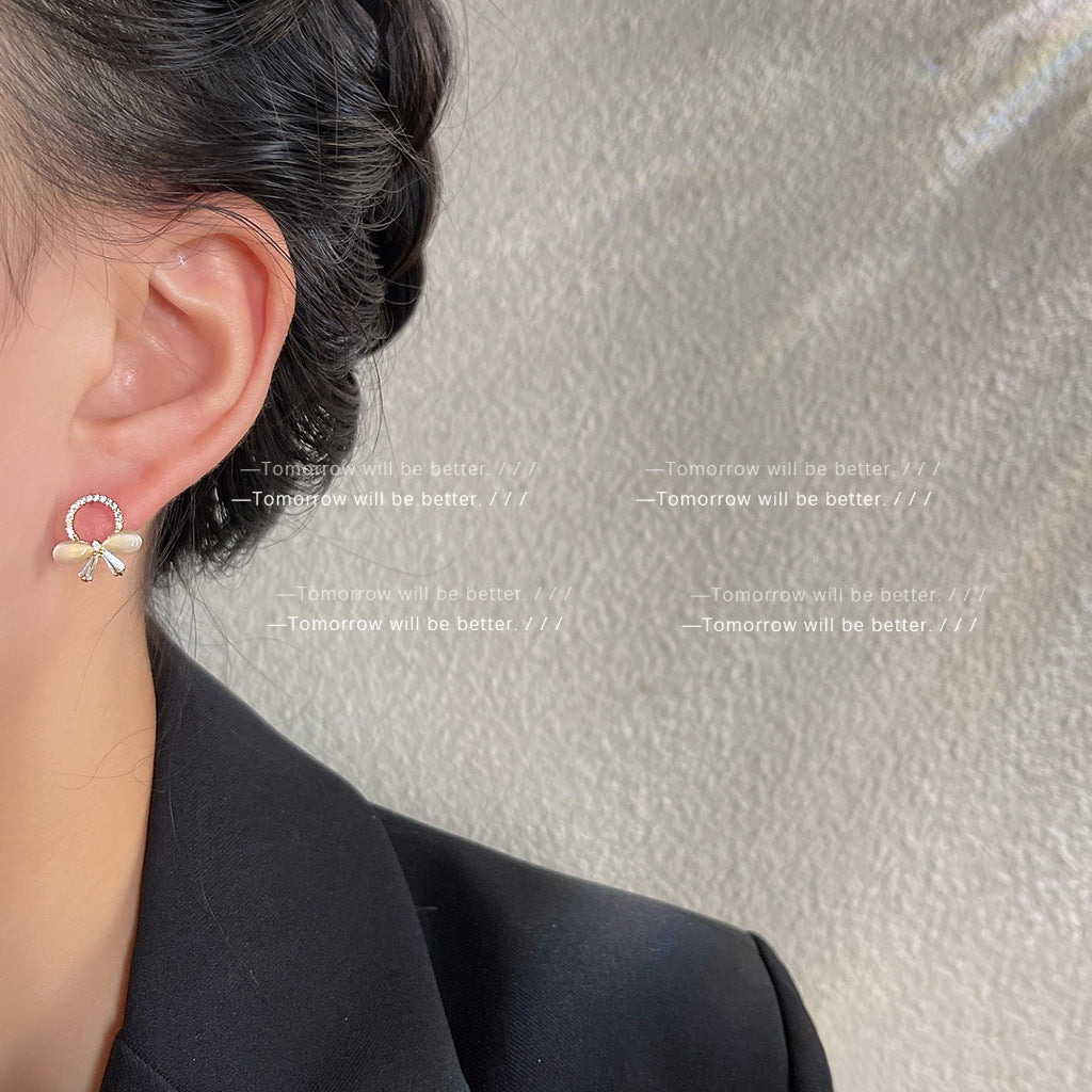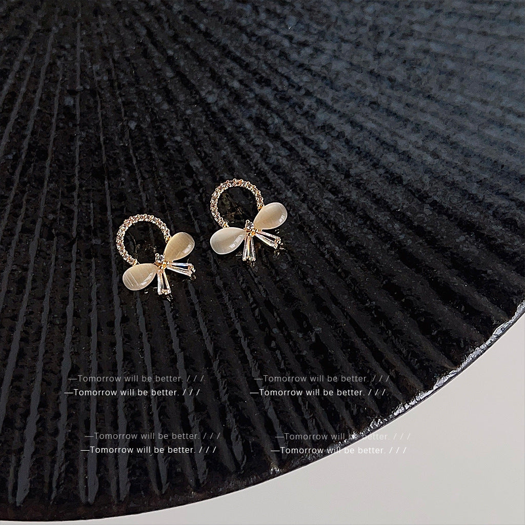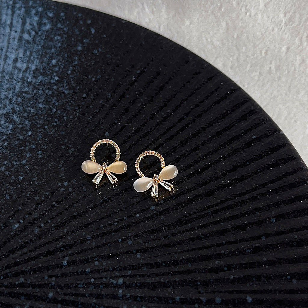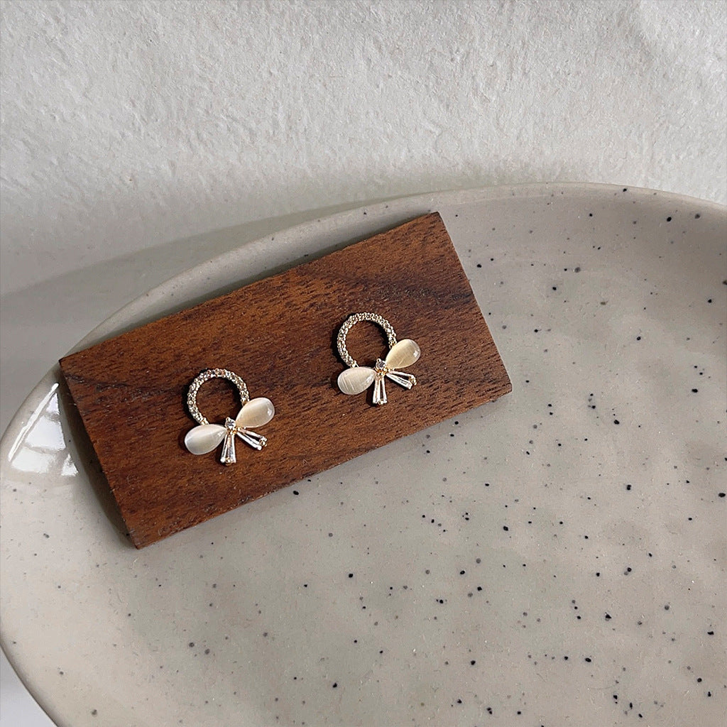 A廠 日韓款小巧貓眼石蝴蝶結銀針耳環 批發 折扣@洽客服 25.11.W4「852」