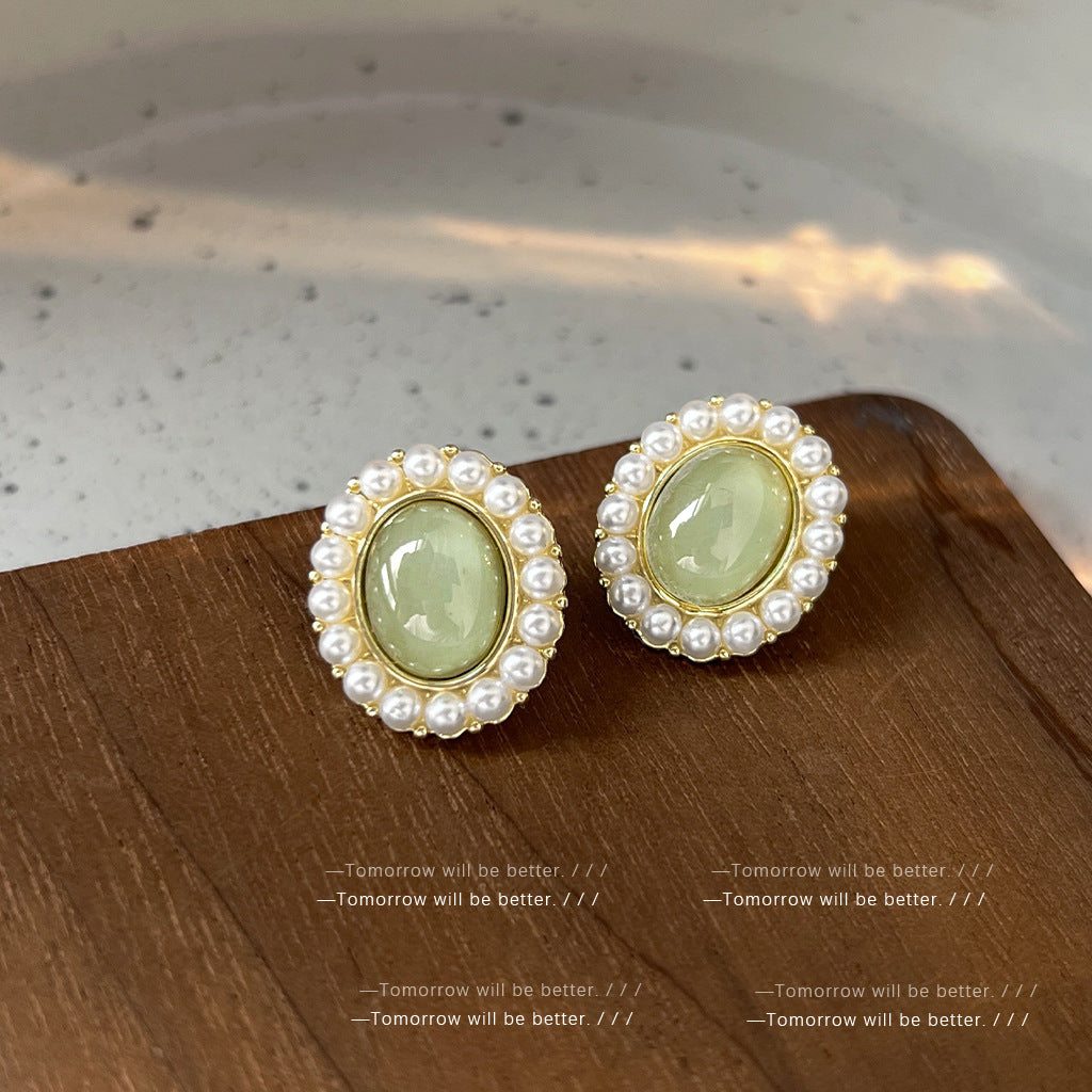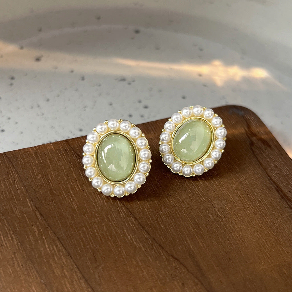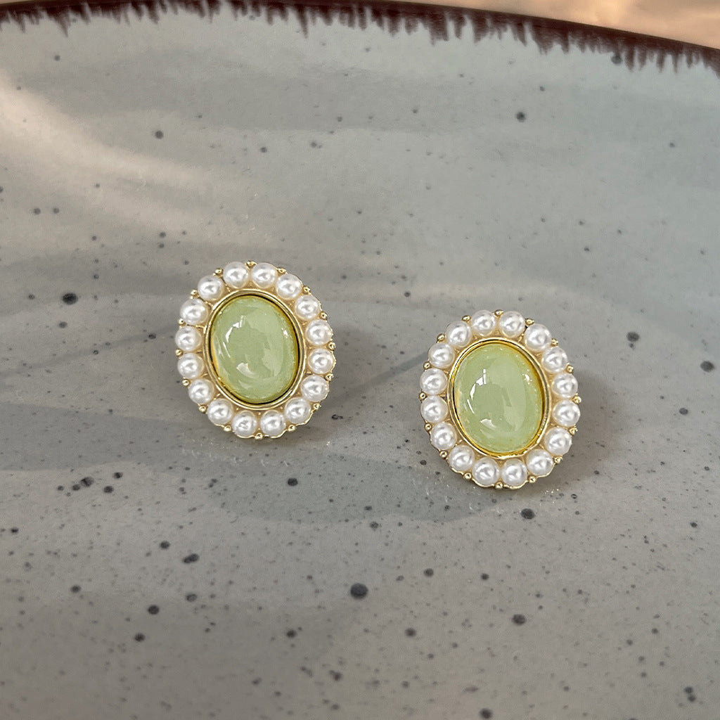 A廠 日韓款 復古綠橢圓形珍珠銀針耳環 批發 折扣@洽客服 25.11.W2「A106」