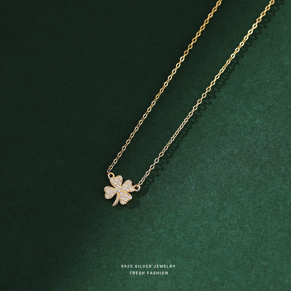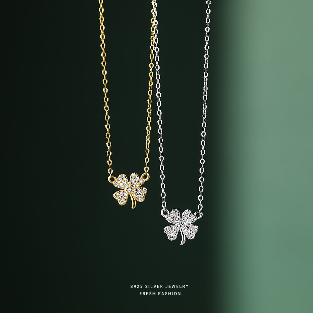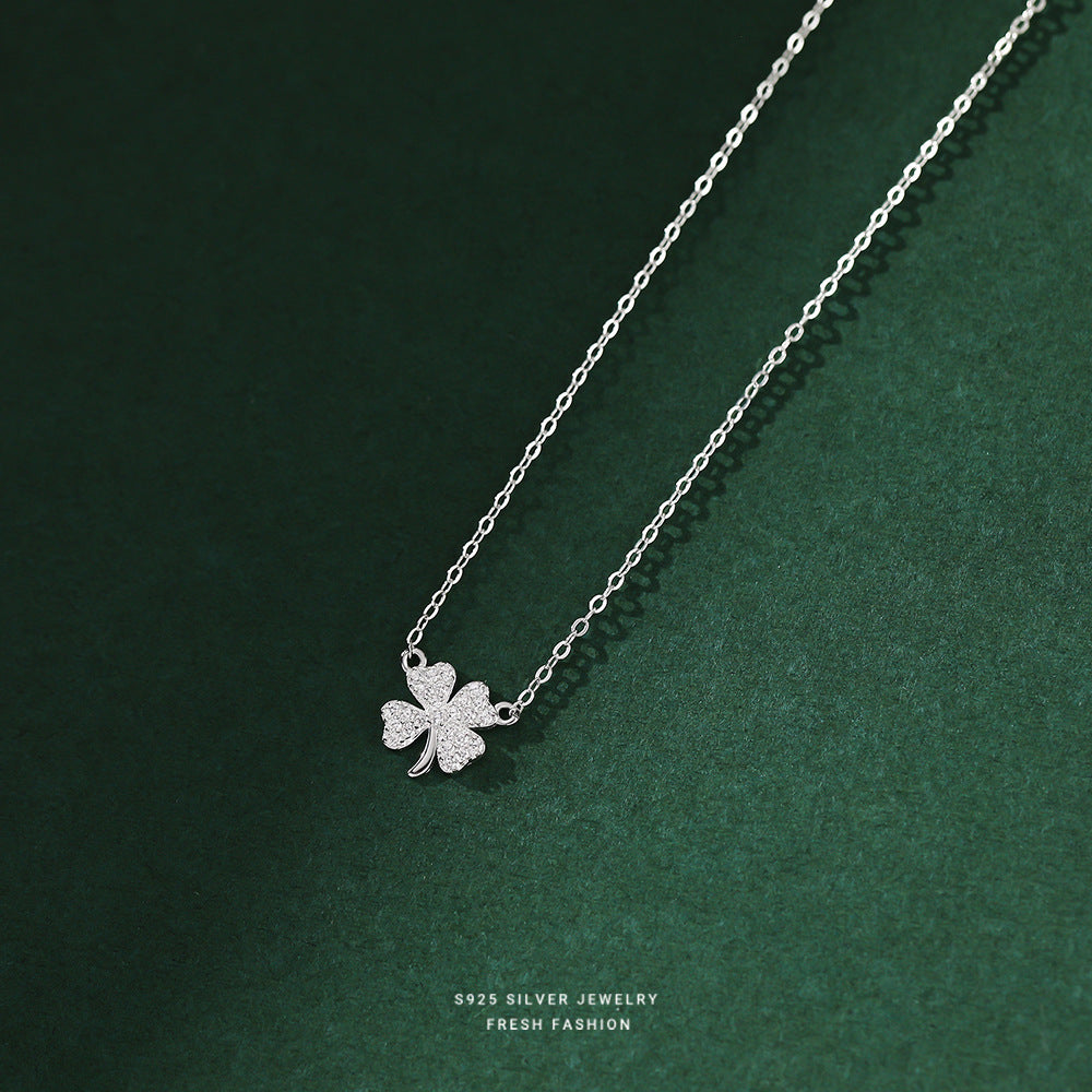C廠 韓國韓版鑲鑽四葉草S999純銀項鍊女批發 折扣@洽客服 26.03.W2「A2482」