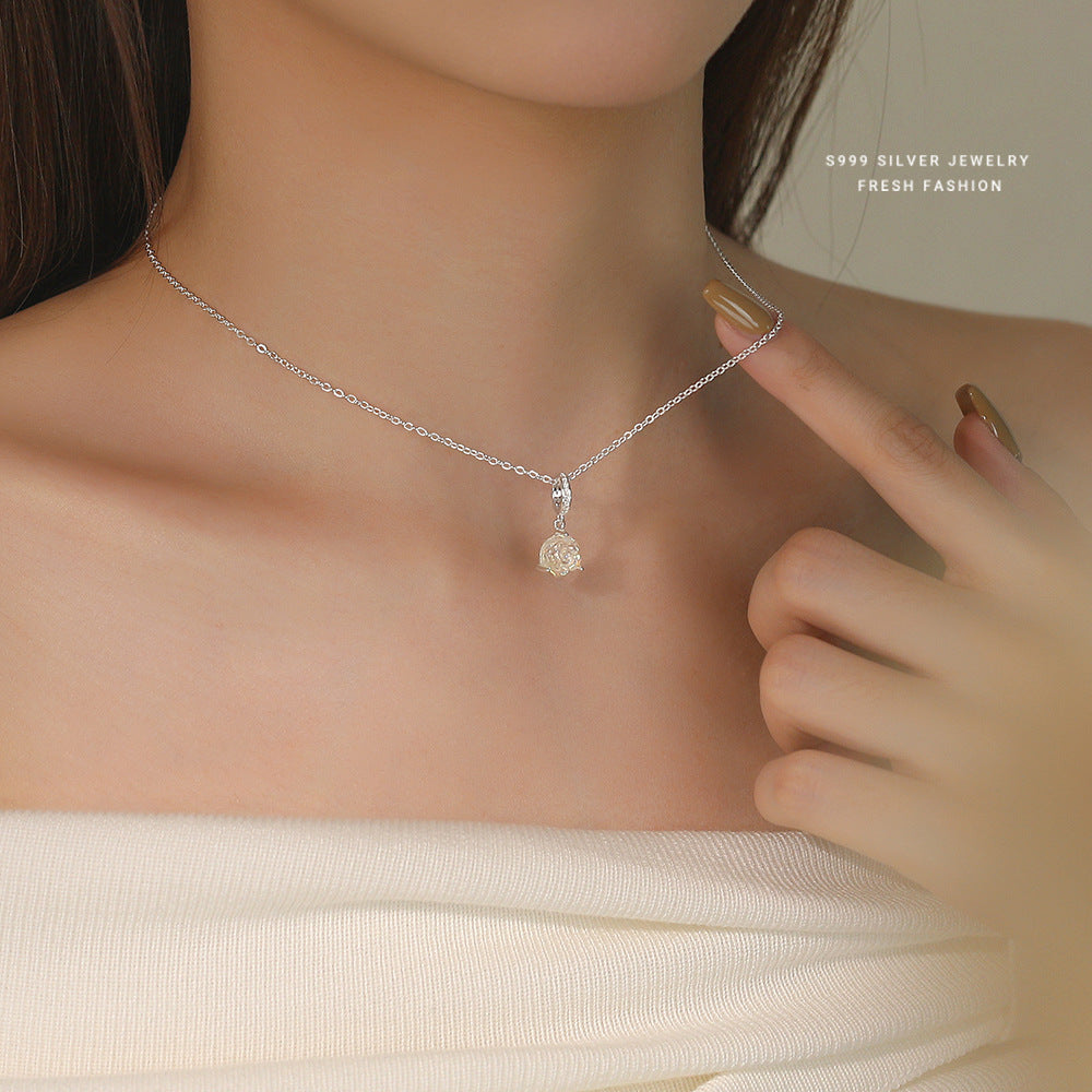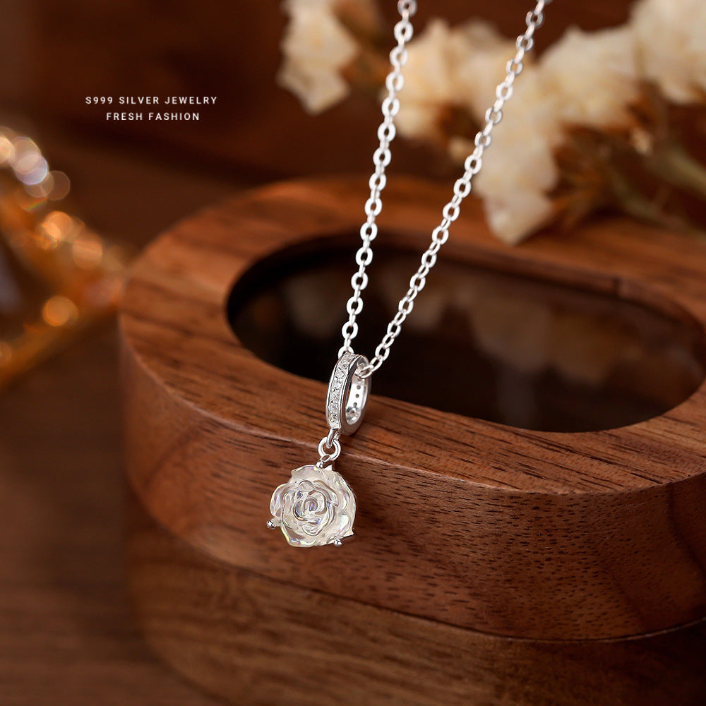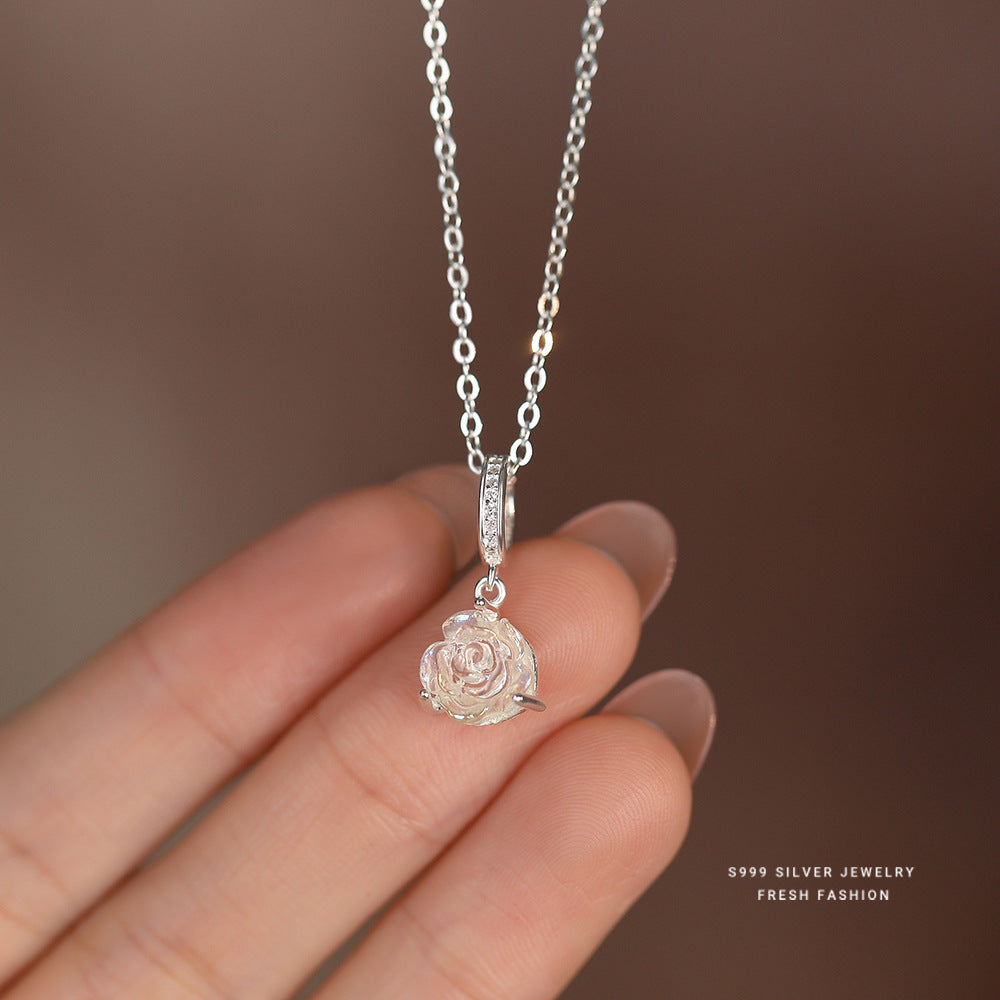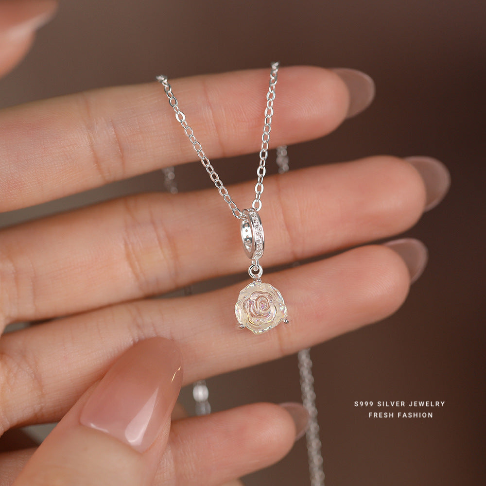 C廠 韓國韓版幻彩玫瑰花S999純銀項鍊 批發 折扣@洽客服 25.11.W3「A3751」