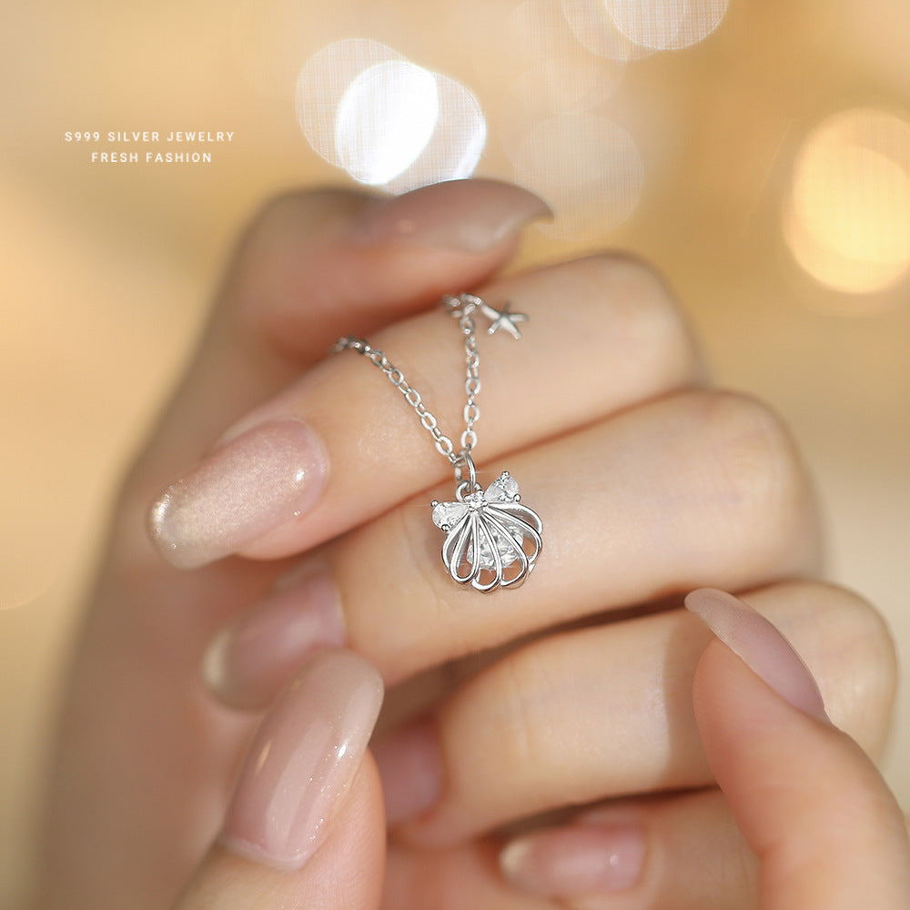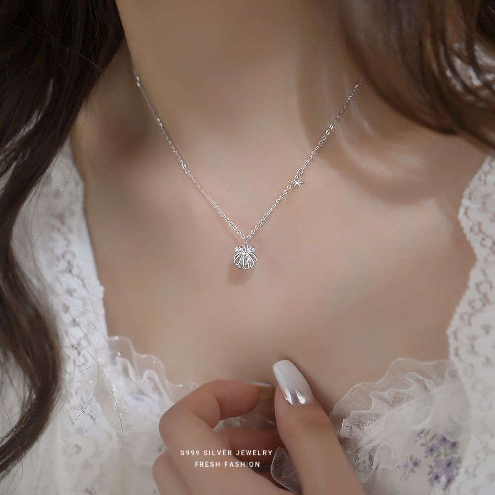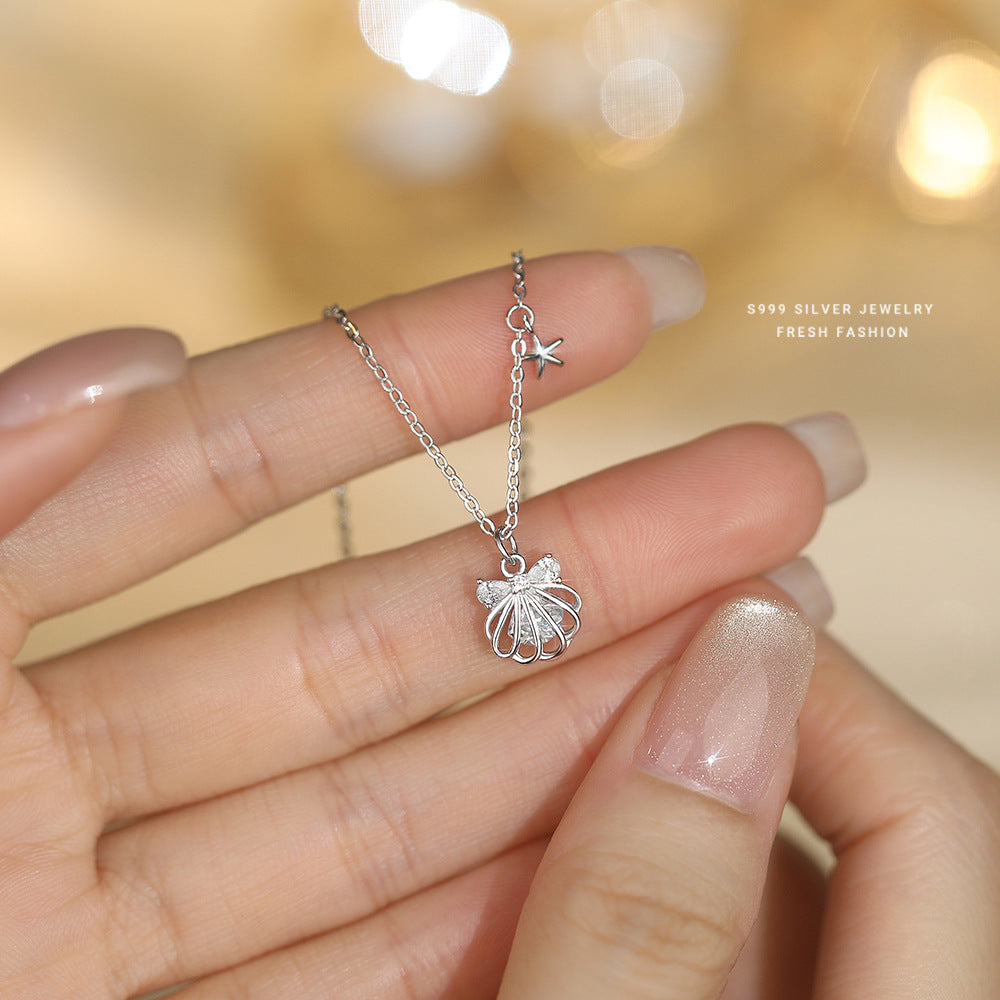 C廠 韓國韓系鏤空線條貝殼吊墜S999純銀項鍊 批發 折扣@洽客服 25.10.W1「A4388」
