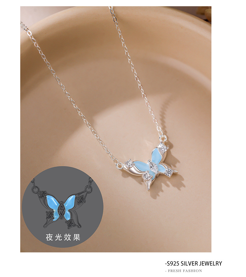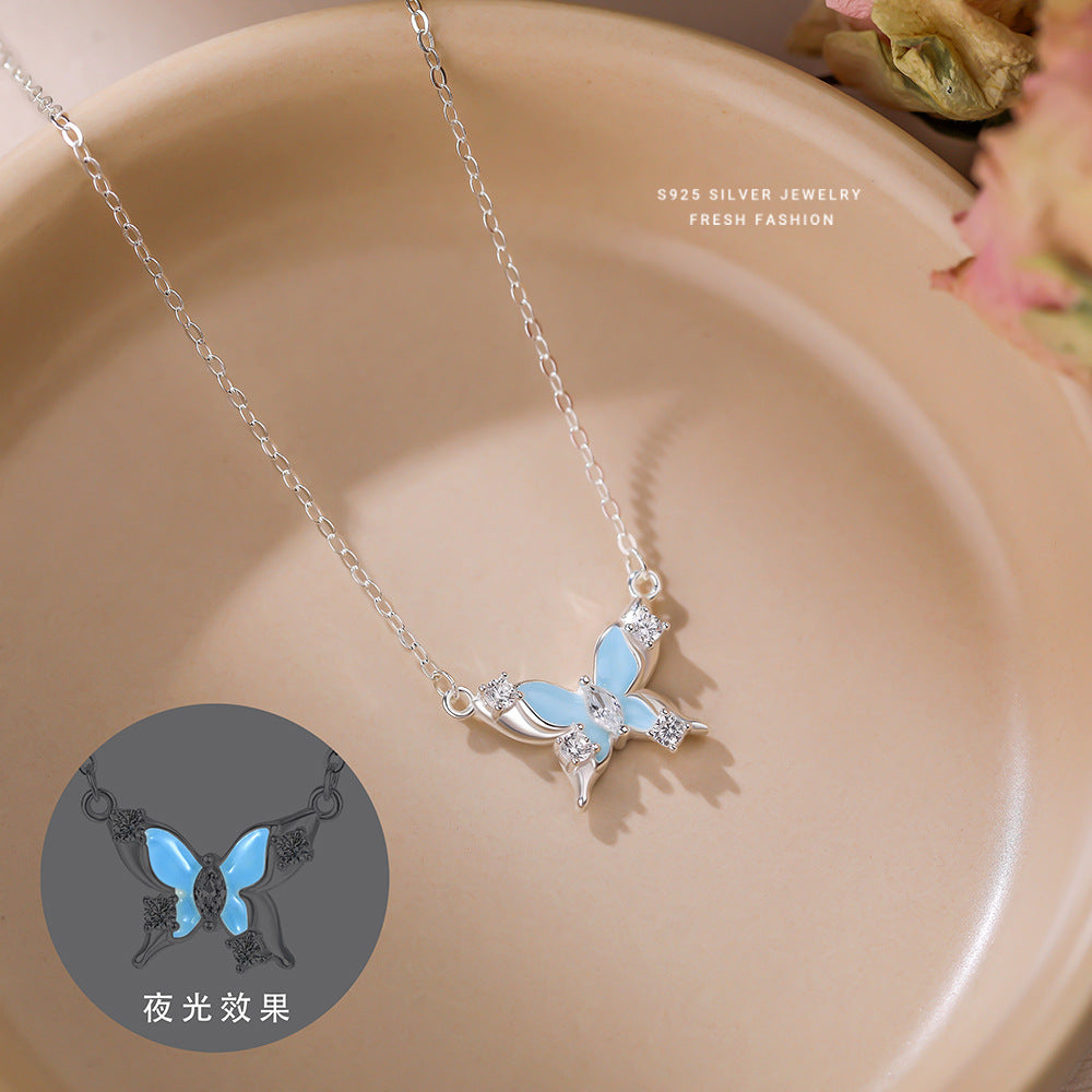 C廠 韓國韓版個性夜光蝴蝶吊墜S925純銀項鍊 批發 折扣@洽客服 25.10.W5「A4473」