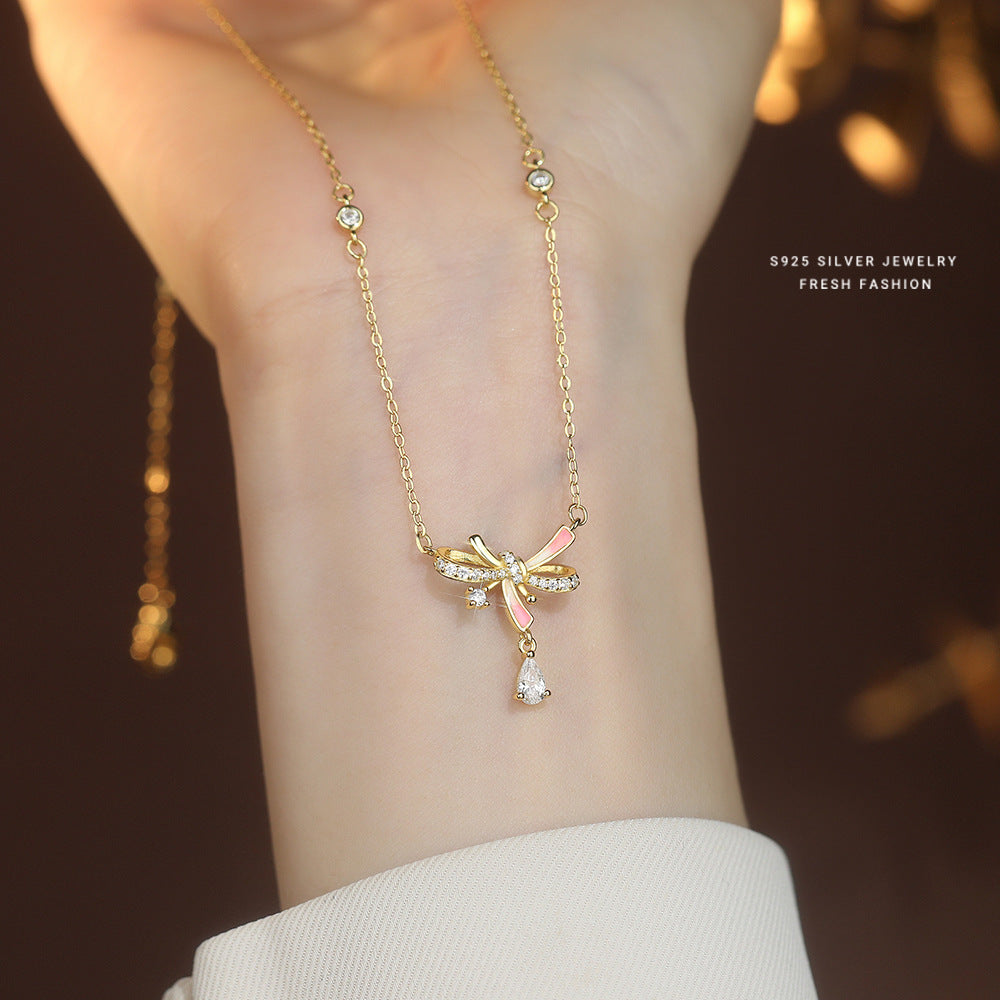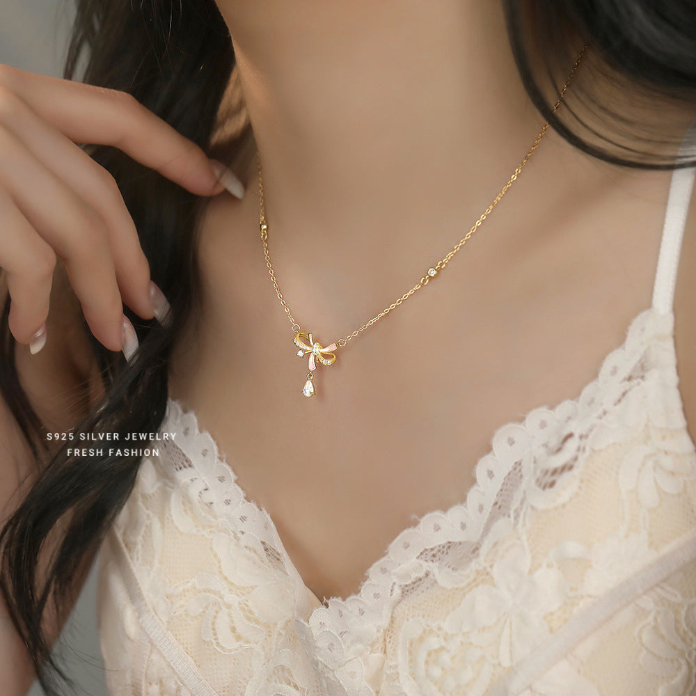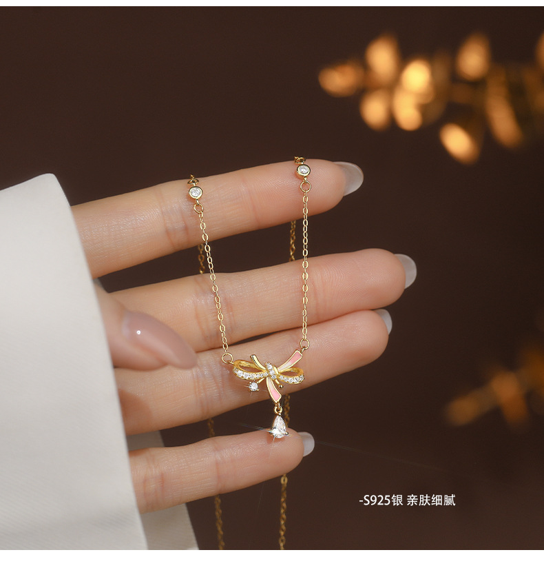 C廠 韓國韓版夜光膠蝴蝶結S925純銀項鍊 批發 折扣@洽客服 25.10.W5「A4475」