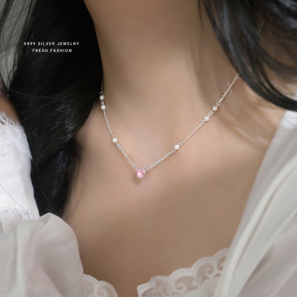 C廠 韓國韓版甜美愛心珍珠S999純銀項鍊 批發 折扣@洽客服 25.10.W5「A4477」