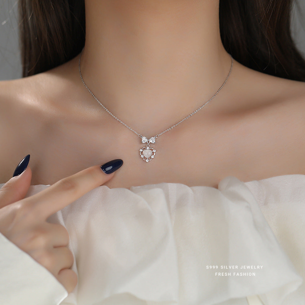 C廠 韓國韓版蝴蝶結愛心S999純銀項鍊 批發 折扣@洽客服 25.11.W1「A4536」