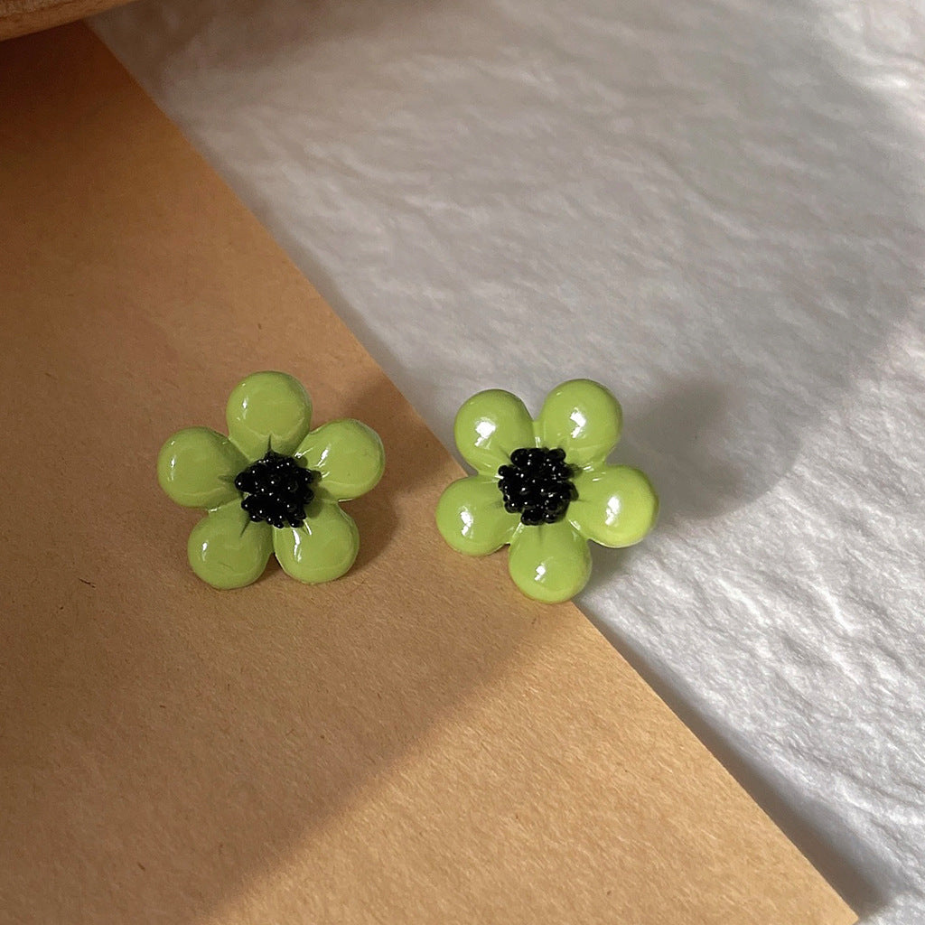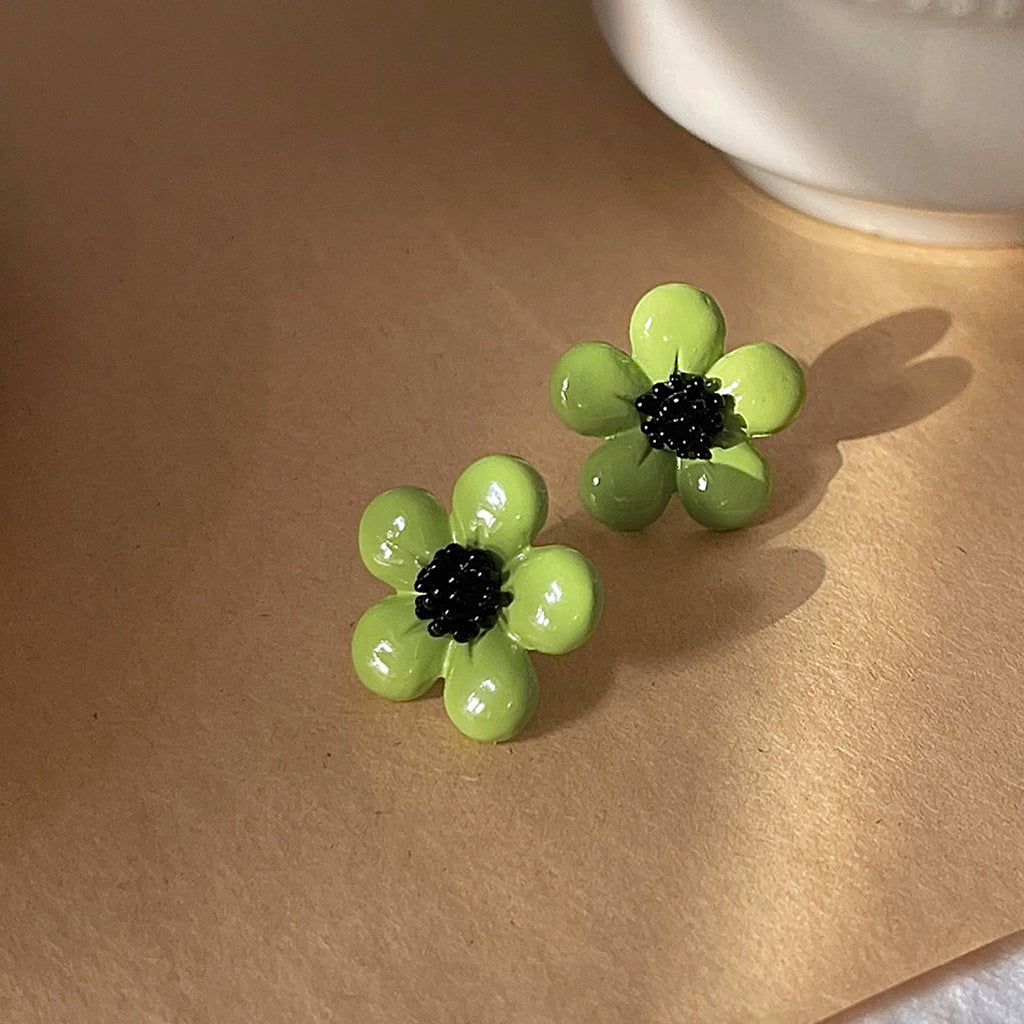 A廠 日韓款 小清新酪梨綠滴油花朵銀針耳環 批發 折扣@洽客服 25.11.W1「A46」