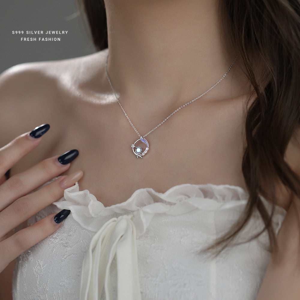 C廠 韓國韓版月光石魚尾S999純銀項鍊 批發 折扣@洽客服 25.11.W3「A4600」