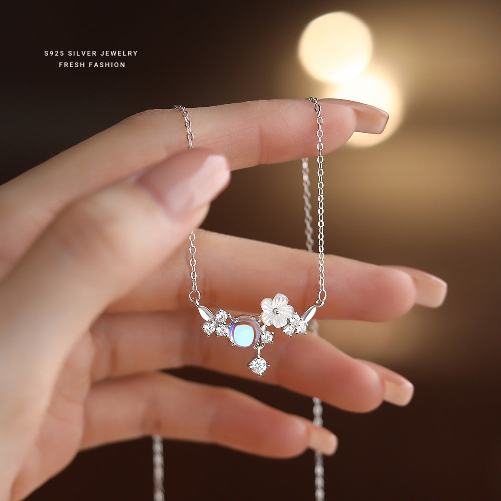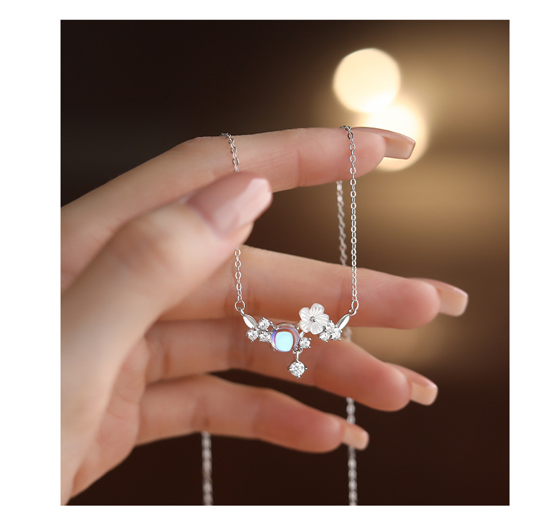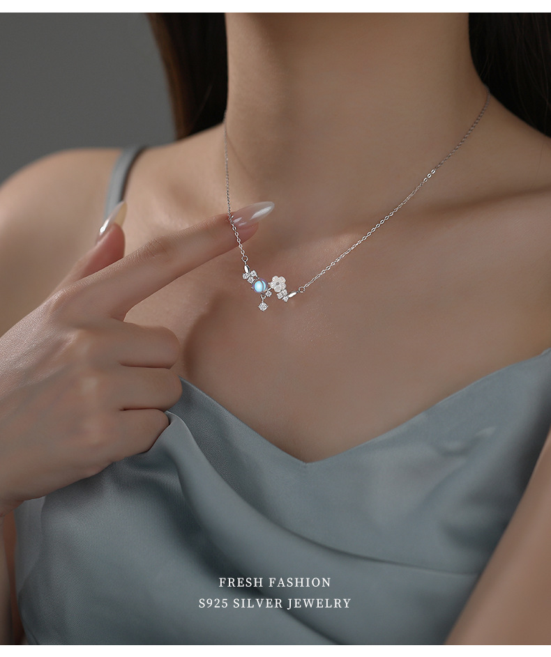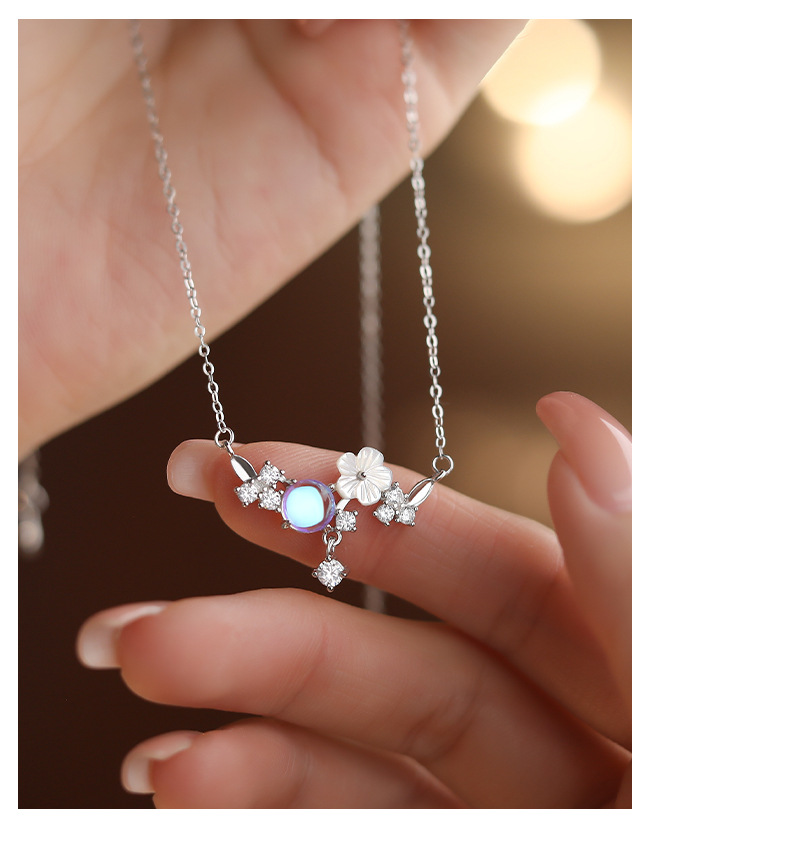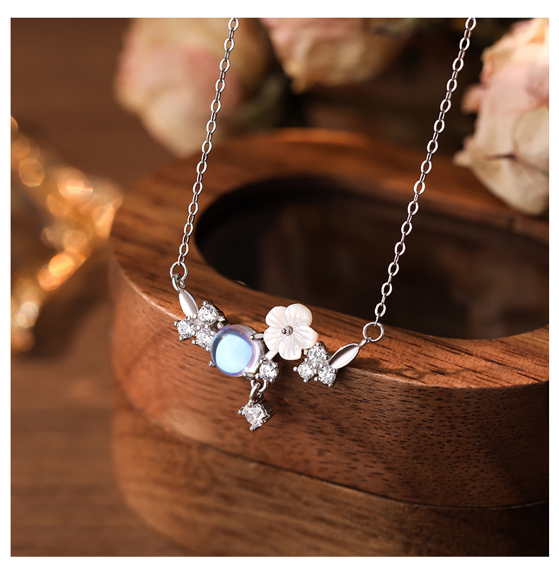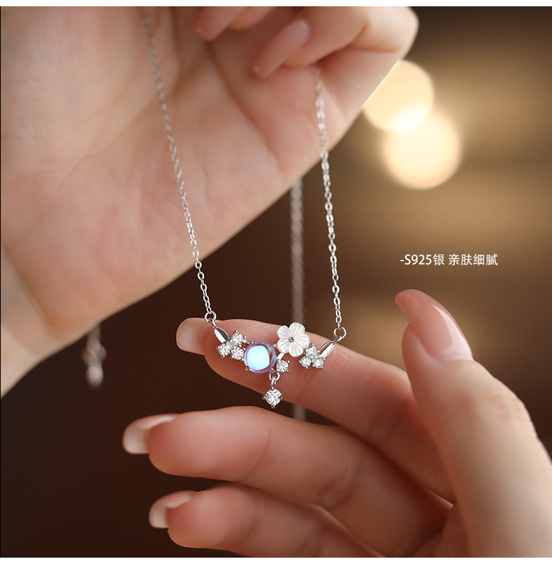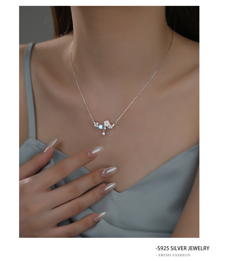 C廠 韓國韓版月光石山茶花S925純銀項鍊 批發 折扣@洽客服 25.11.26「A4629」