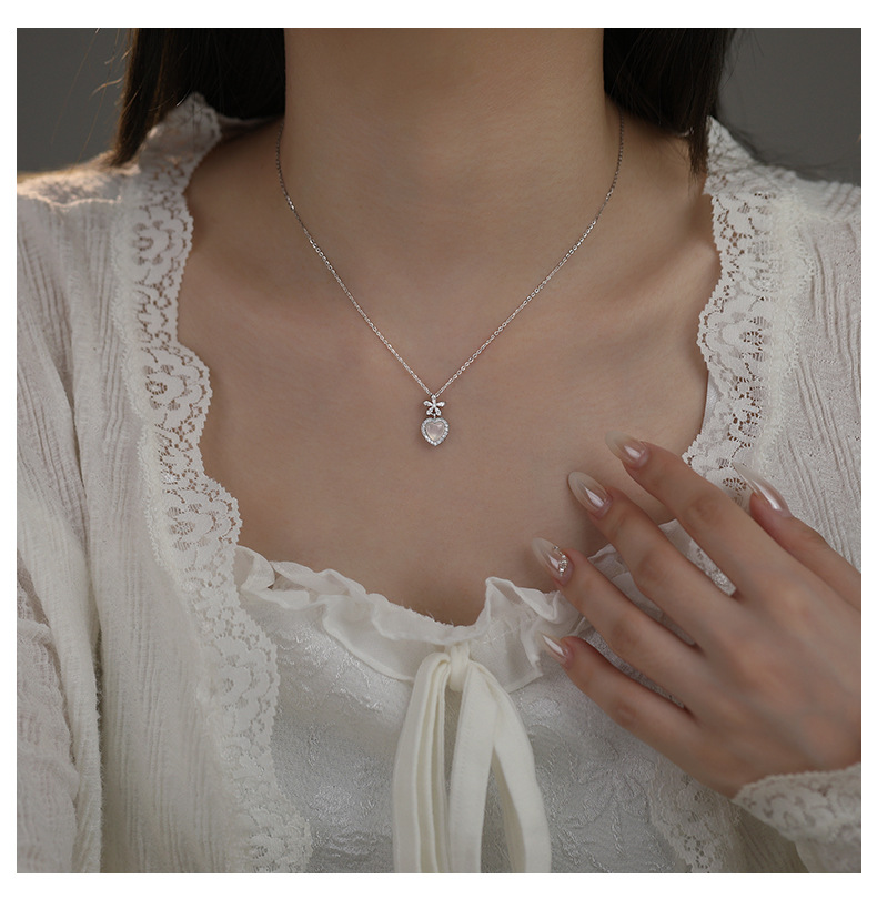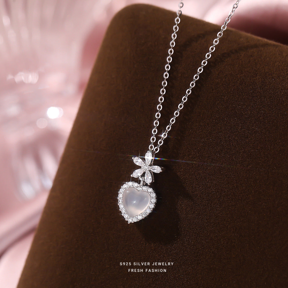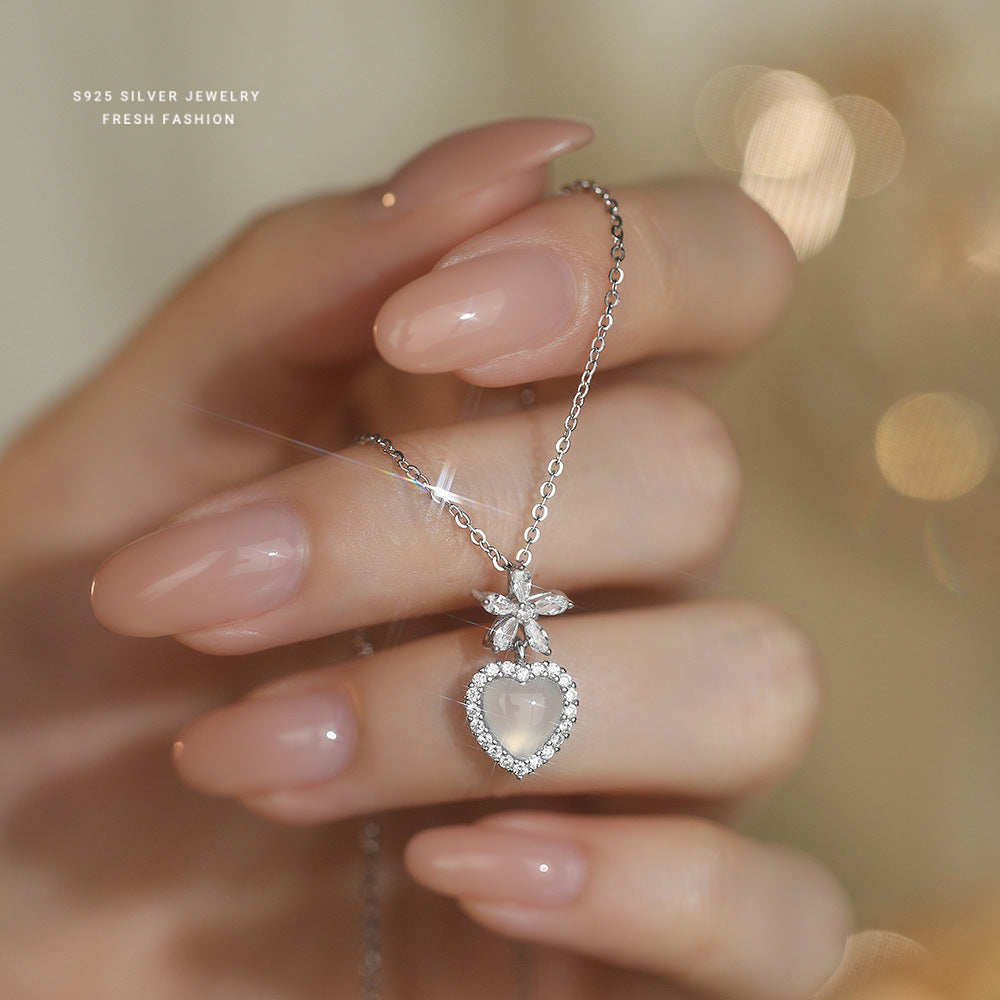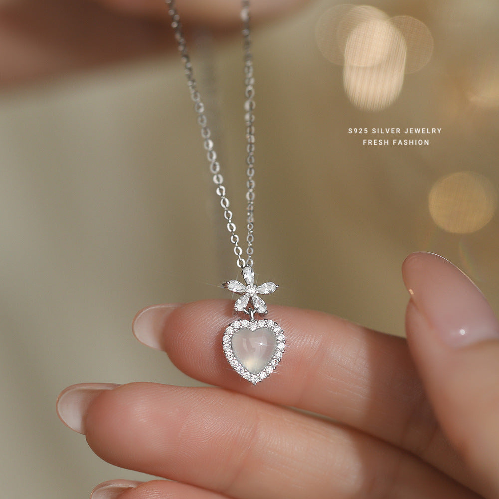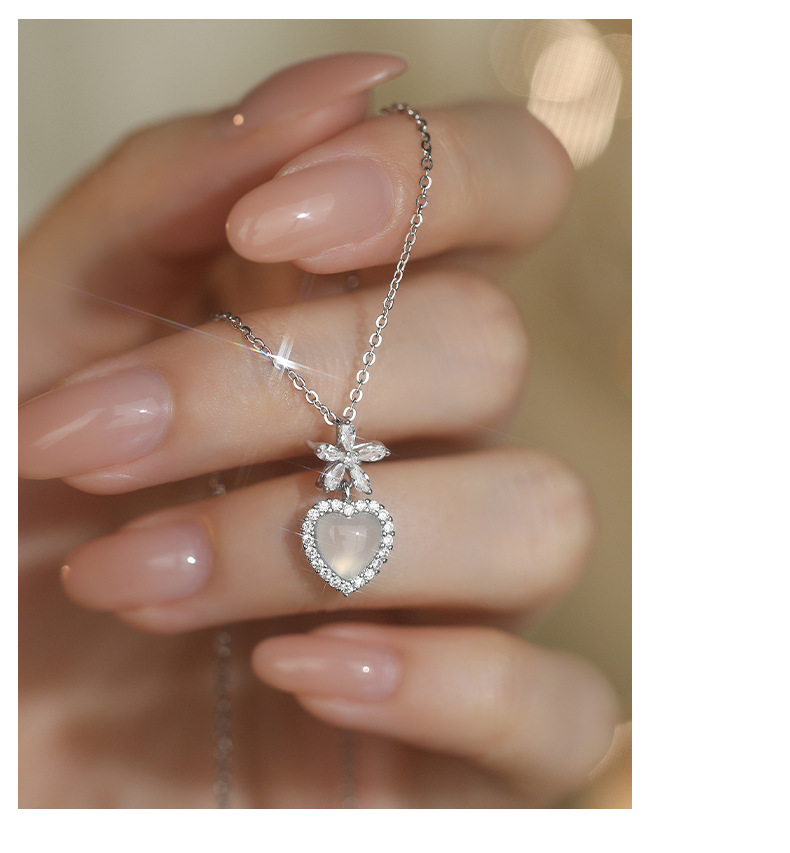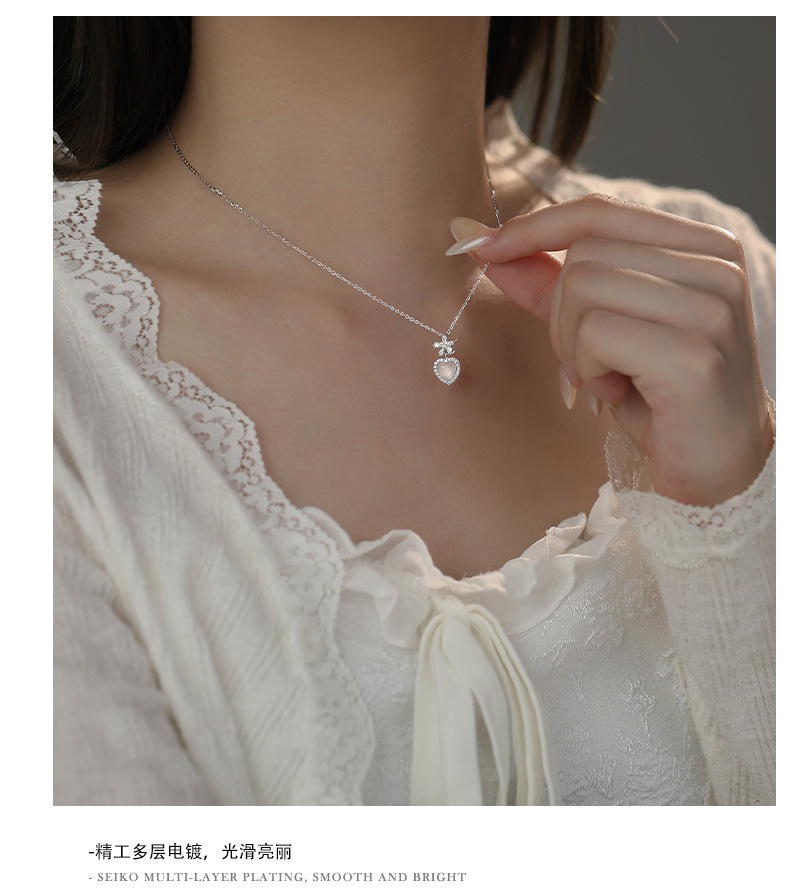 C廠 韓國韓版白玉髓花朵愛心S925純銀項鍊 批發 折扣@洽客服 25.12.W1「A4696」