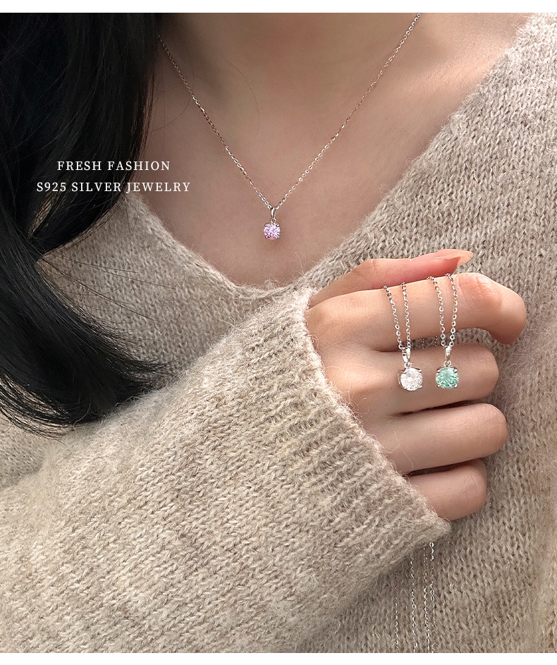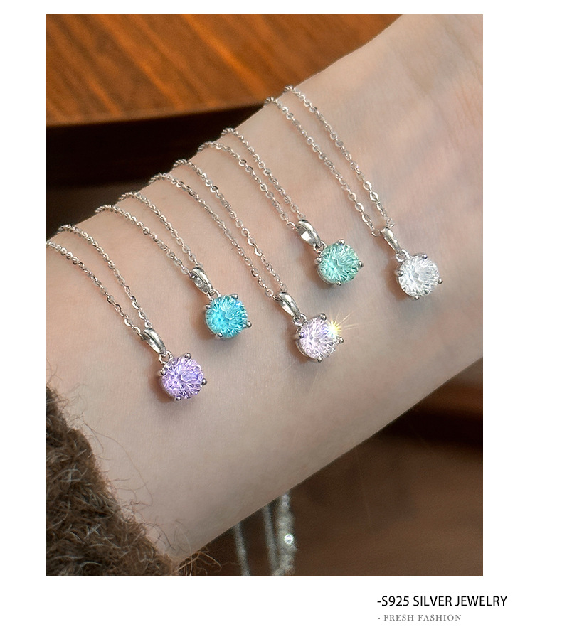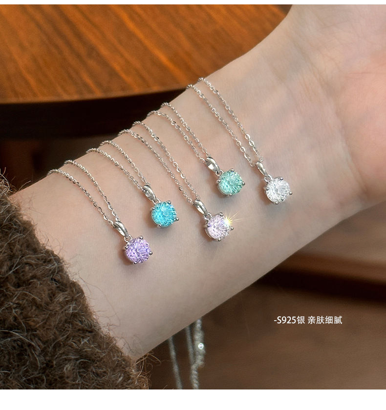 C廠 S925純銀|四爪煙火彩色鋯石項鍊 批發 折扣@洽客服 25.01.W4「A4869」