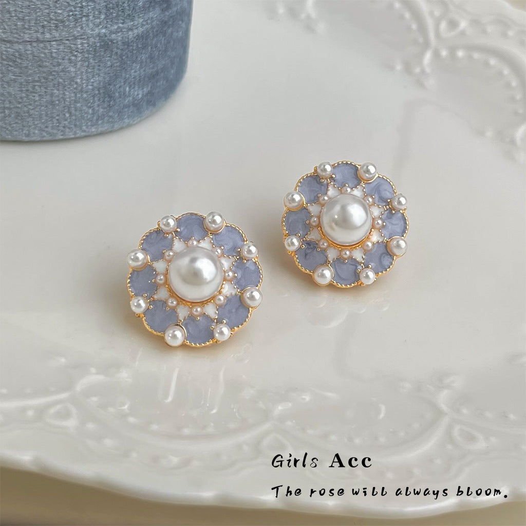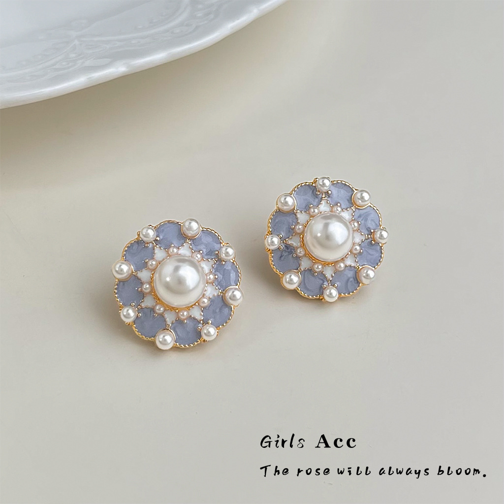 A2廠 日韓款復古油畫感花卉滴油銀針耳環 批發 折扣@洽客服 25.12.W1「B-439」