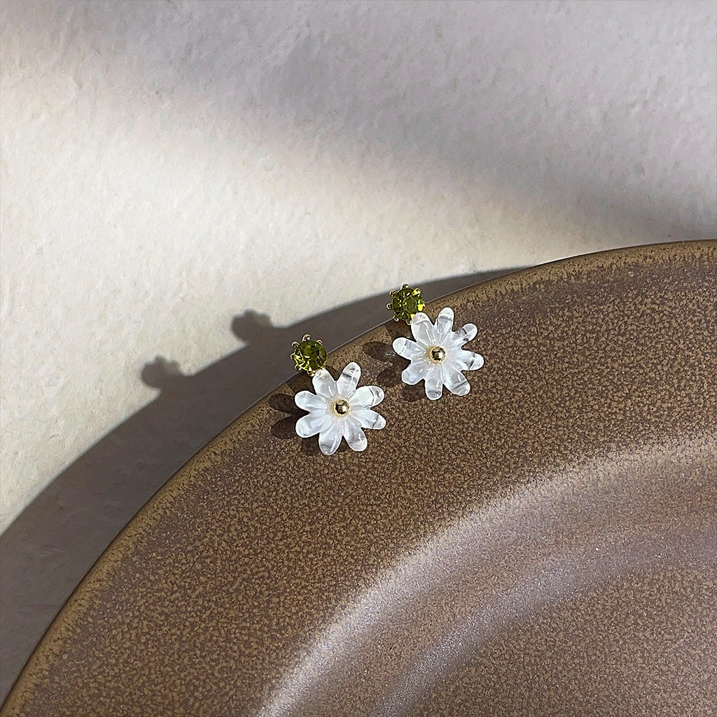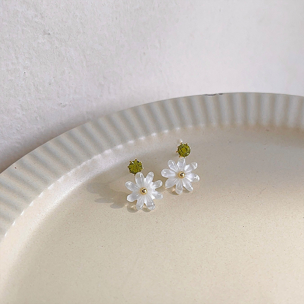 A廠 韓系迷你小雛菊鑲鑽花朵環保銅銀針耳環批發 折扣@洽客服 26.03.10「B-867」