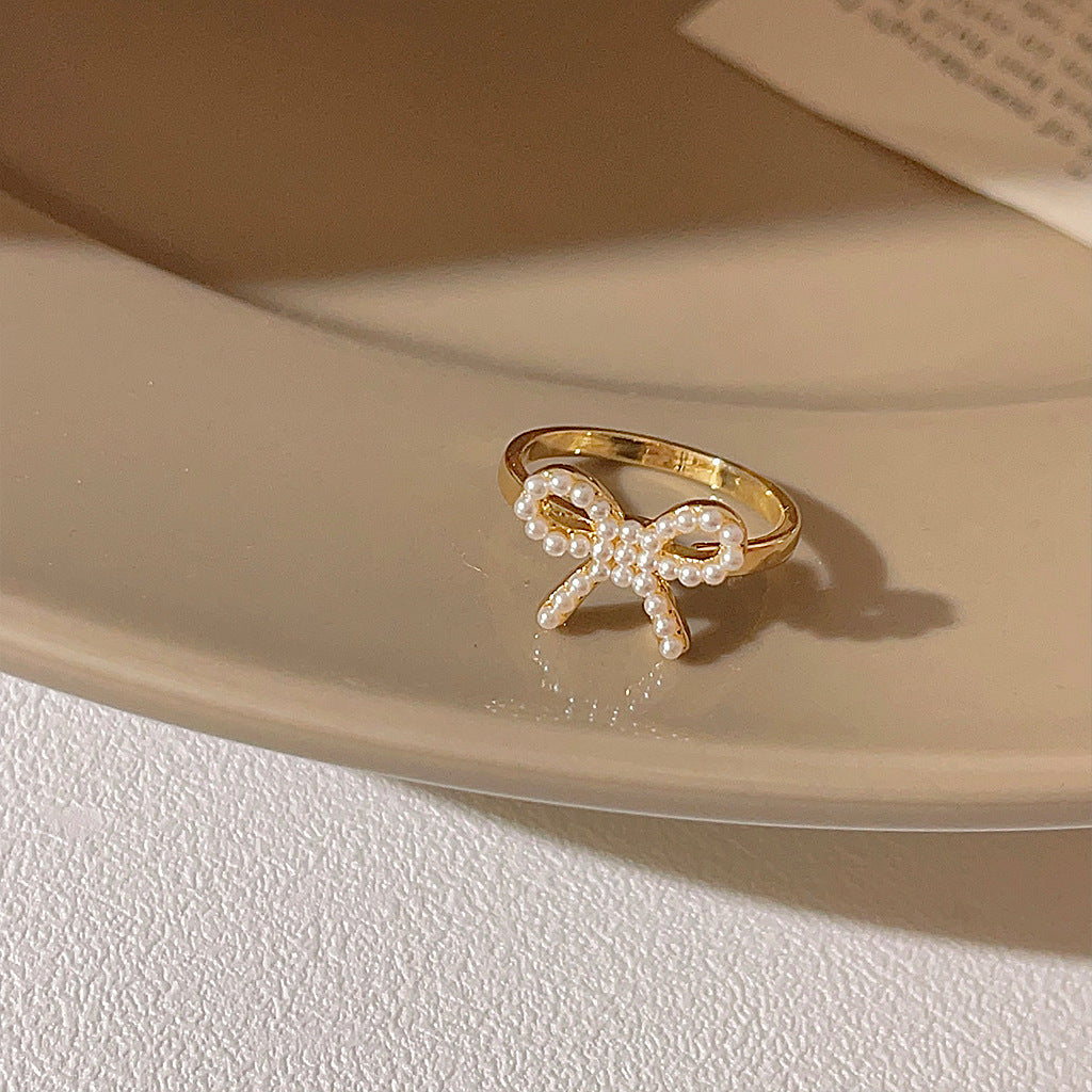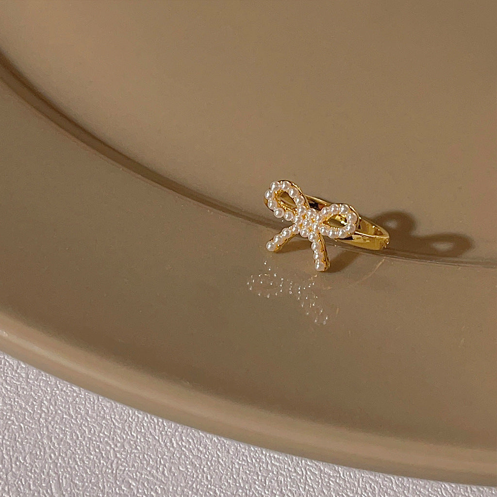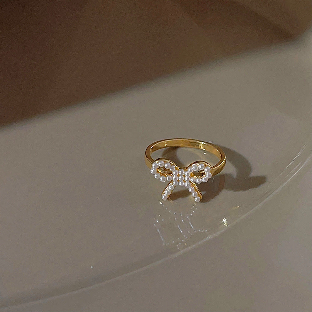 A廠 韓款甜美珍珠蝴蝶結銅鍍14K金戒指 批發 折扣@浴客服 25.05.W1「B-981」
