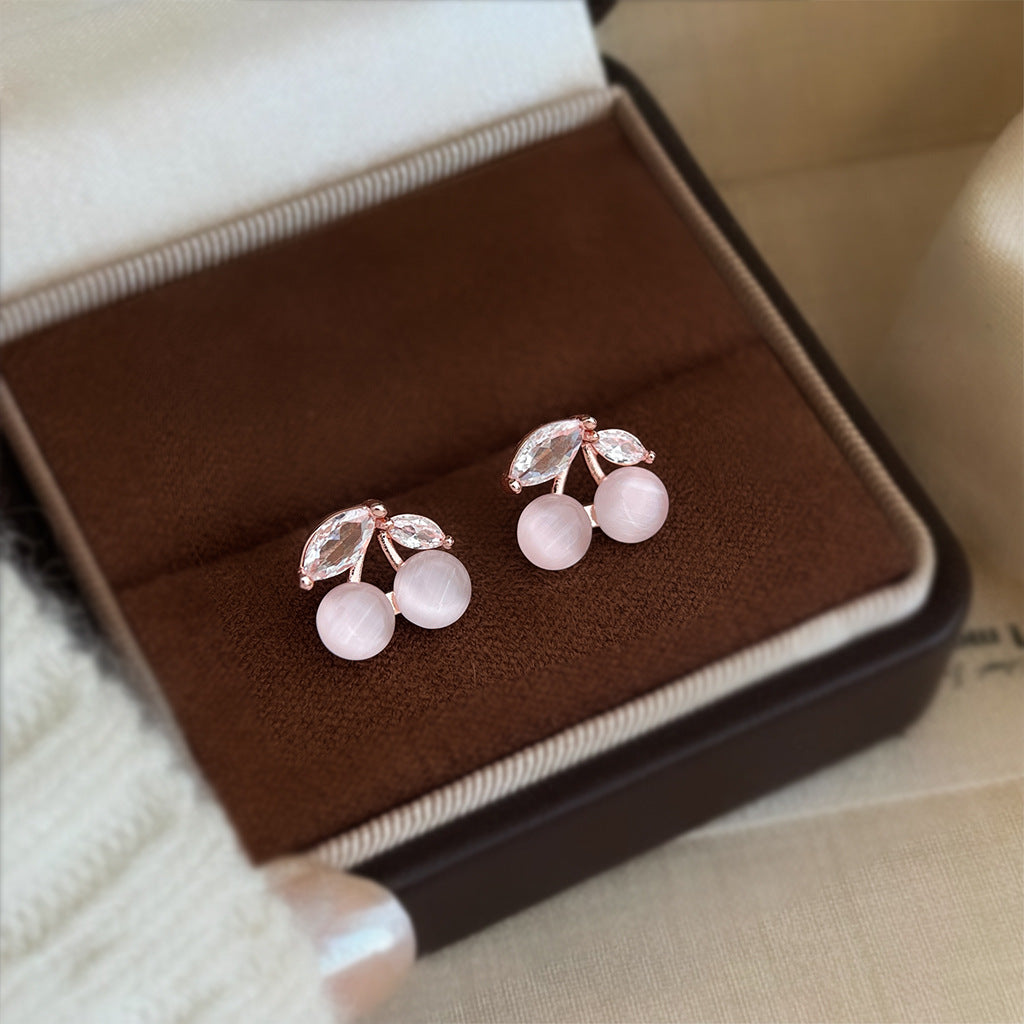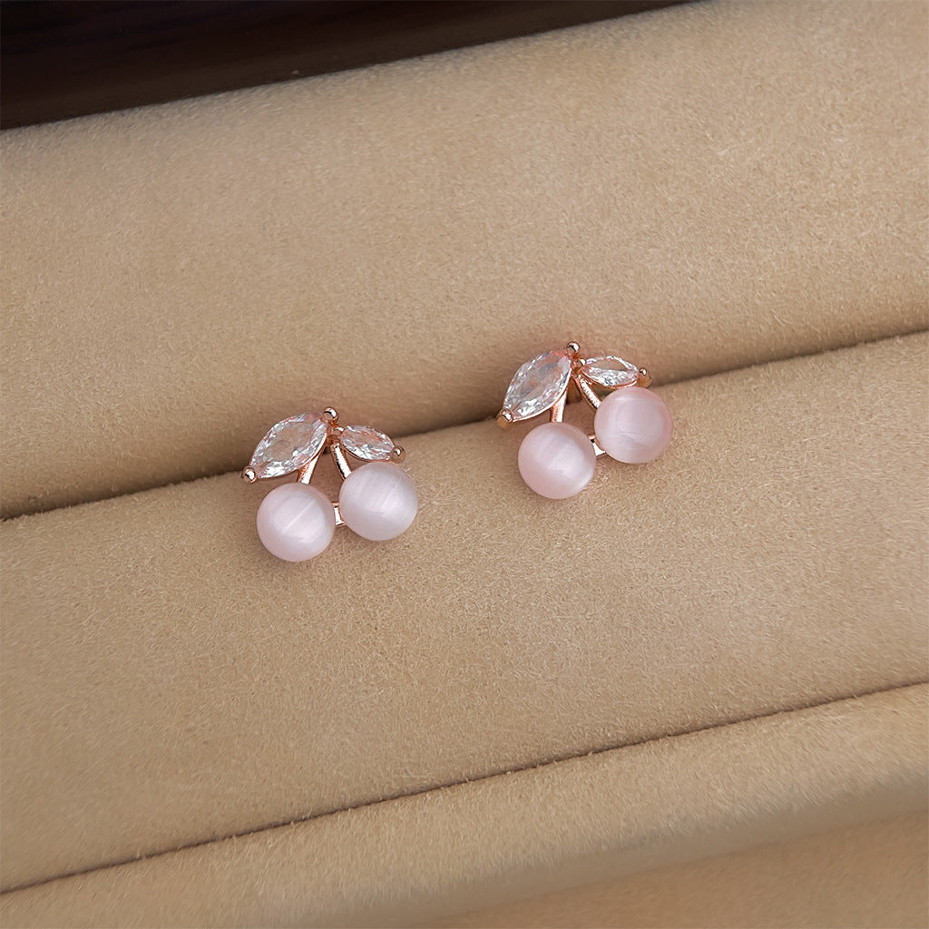 A廠 日韓貓眼石櫻桃銀針耳環 批發 折扣@洽客服 25.12.W3「C-122」