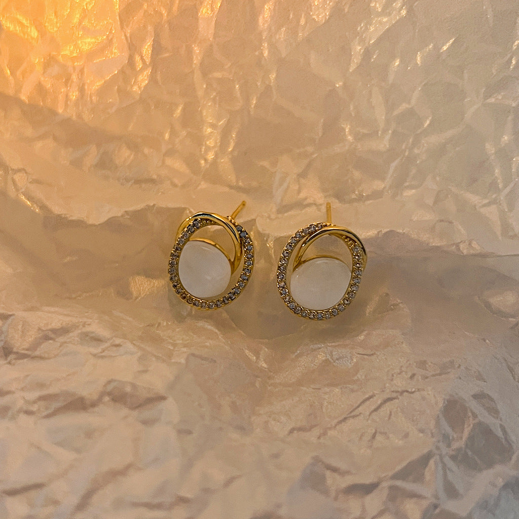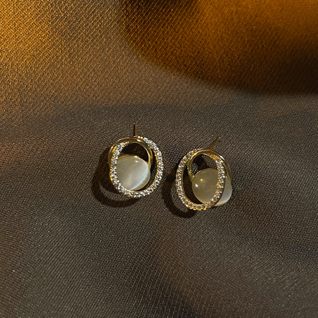 A廠 日韓款微鑲鋯石貓眼石銀針耳環 飾品批發 折扣@洽客服 25.10.W2「C-668」