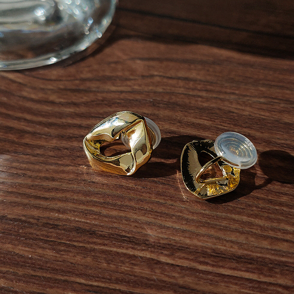 A廠 韓國韓版幾何金屬感蚊香盤 銅鍍14K金耳夾 飾品批發 折扣@洽客服 25.10.W1「C-844」