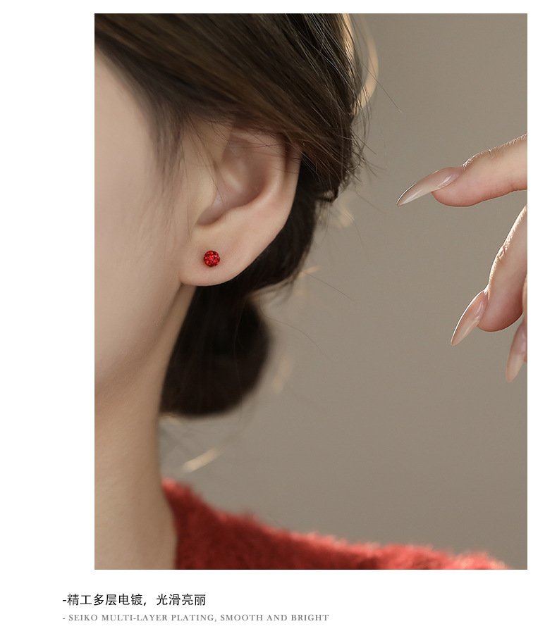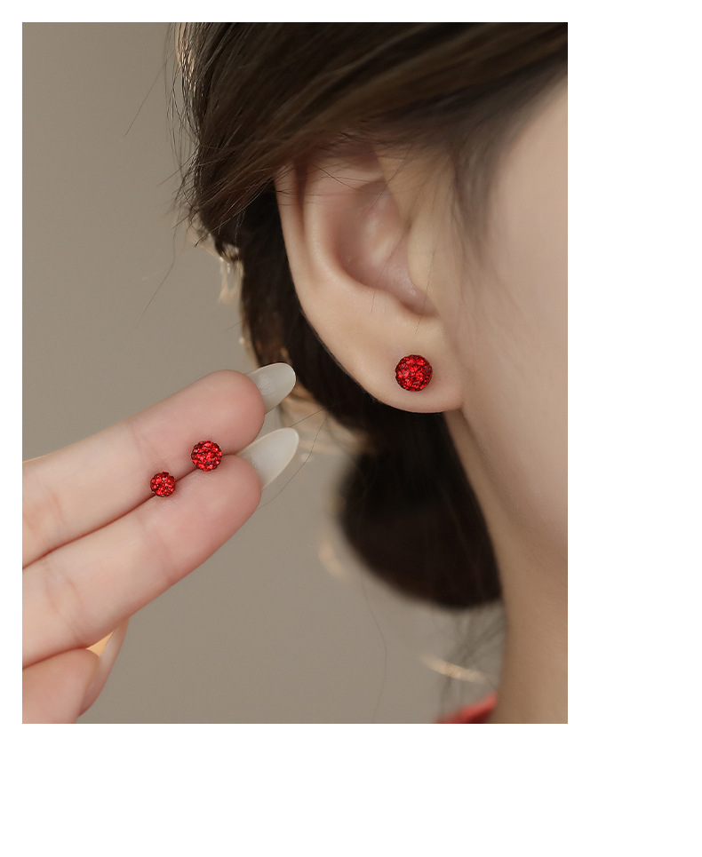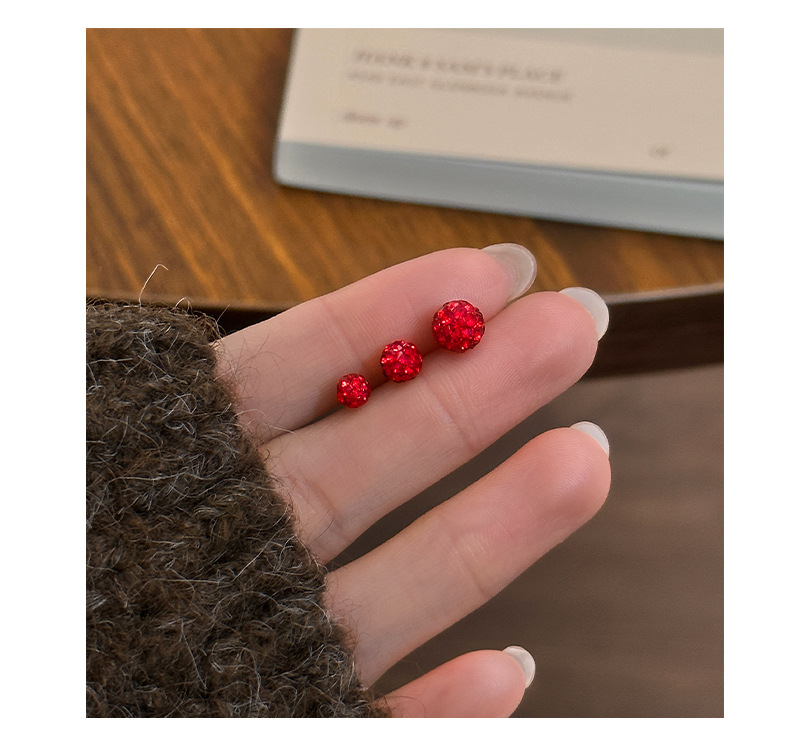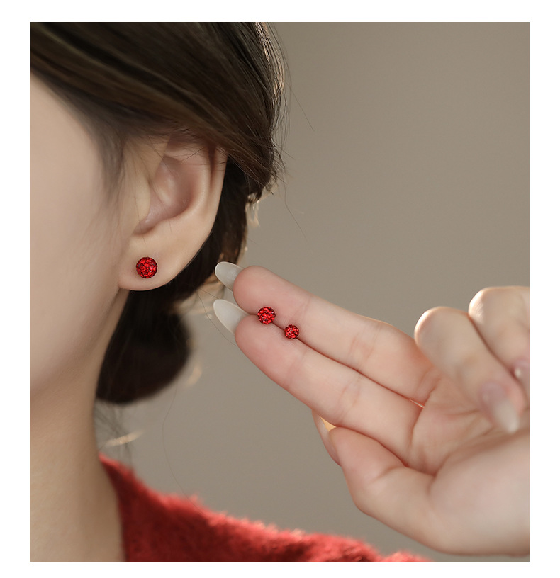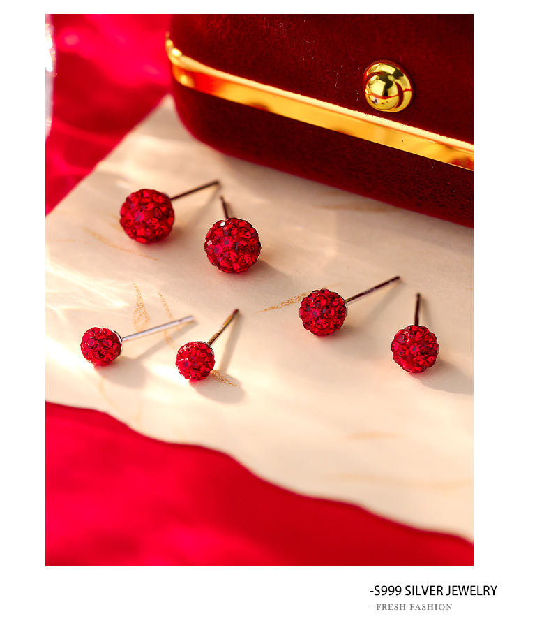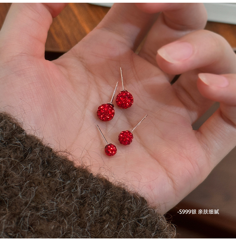 C廠 S999純銀|韓國韓版紅色水鑽香巴拉耳環 批發 折扣@洽客服 26.01.W3「E067」