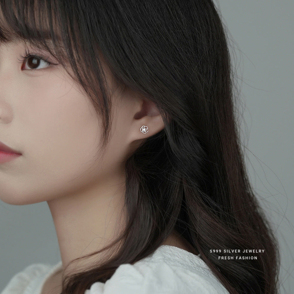 C廠 韓國韓版玫瑰花999純銀耳環批發 折扣@洽客服 26.03.W2「E2830」