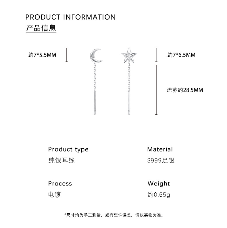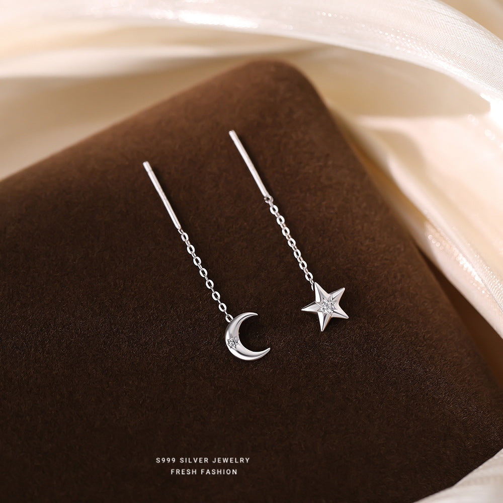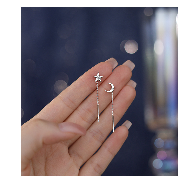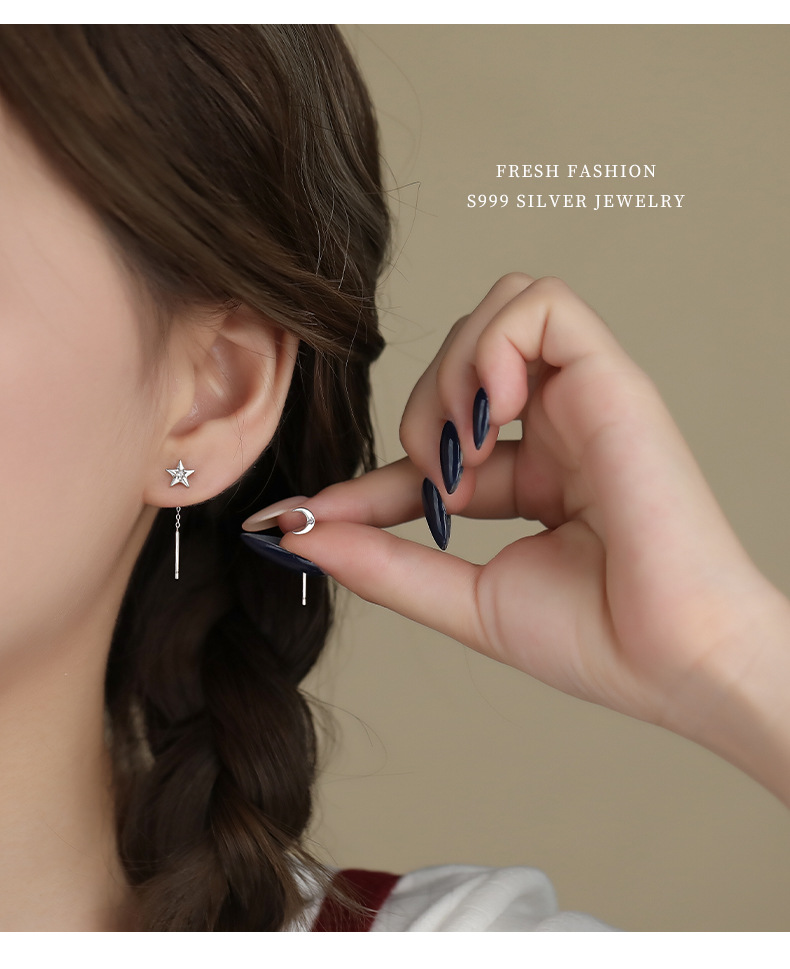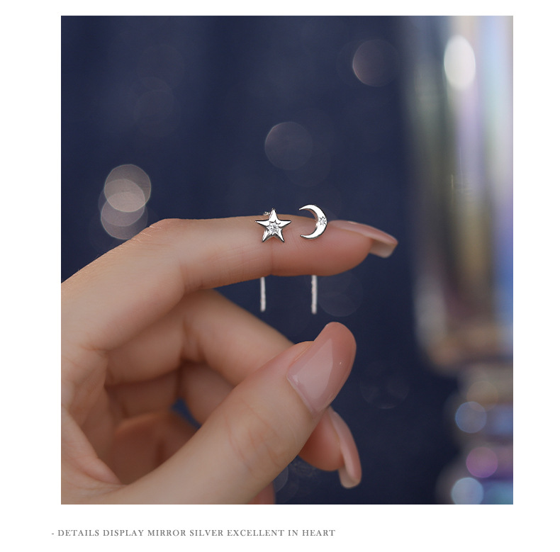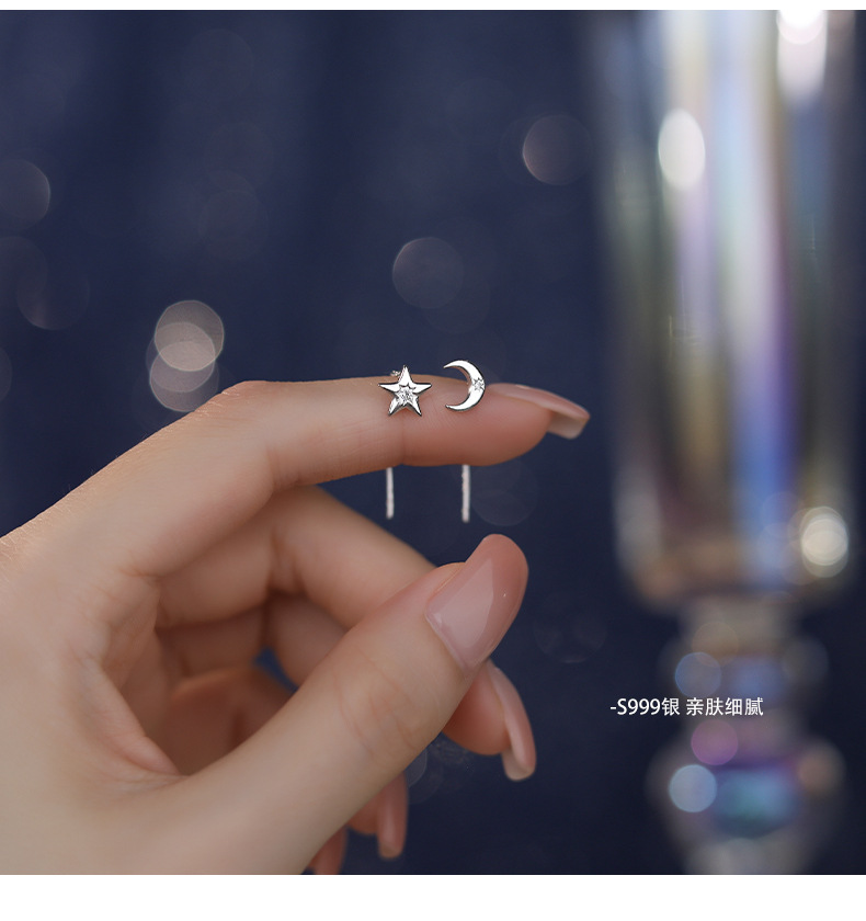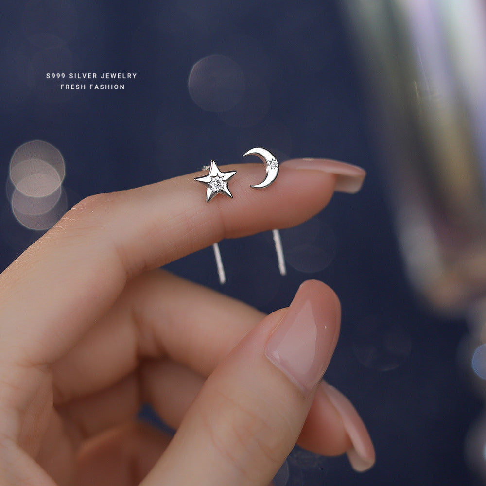 C廠 韓國韓版不對稱星月S999純銀耳線 批發 折扣@洽客服 24.11.W2「E3999-999」