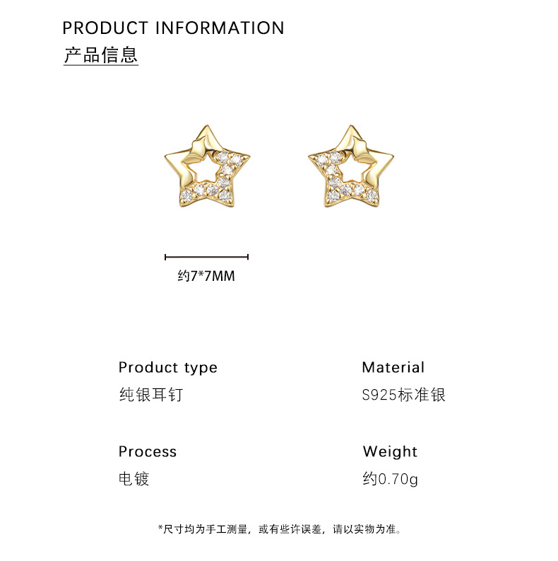 C廠 韓國韓版金閃閃星星S925純銀耳環 批發 折扣@洽客服 25.11.W3「E4331」