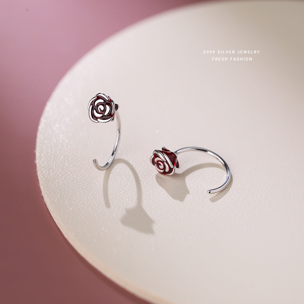 C廠 韓系滴膠紅玫瑰花s925純銀耳環 批發 折扣@洽客服 25.08.W3「E4981」