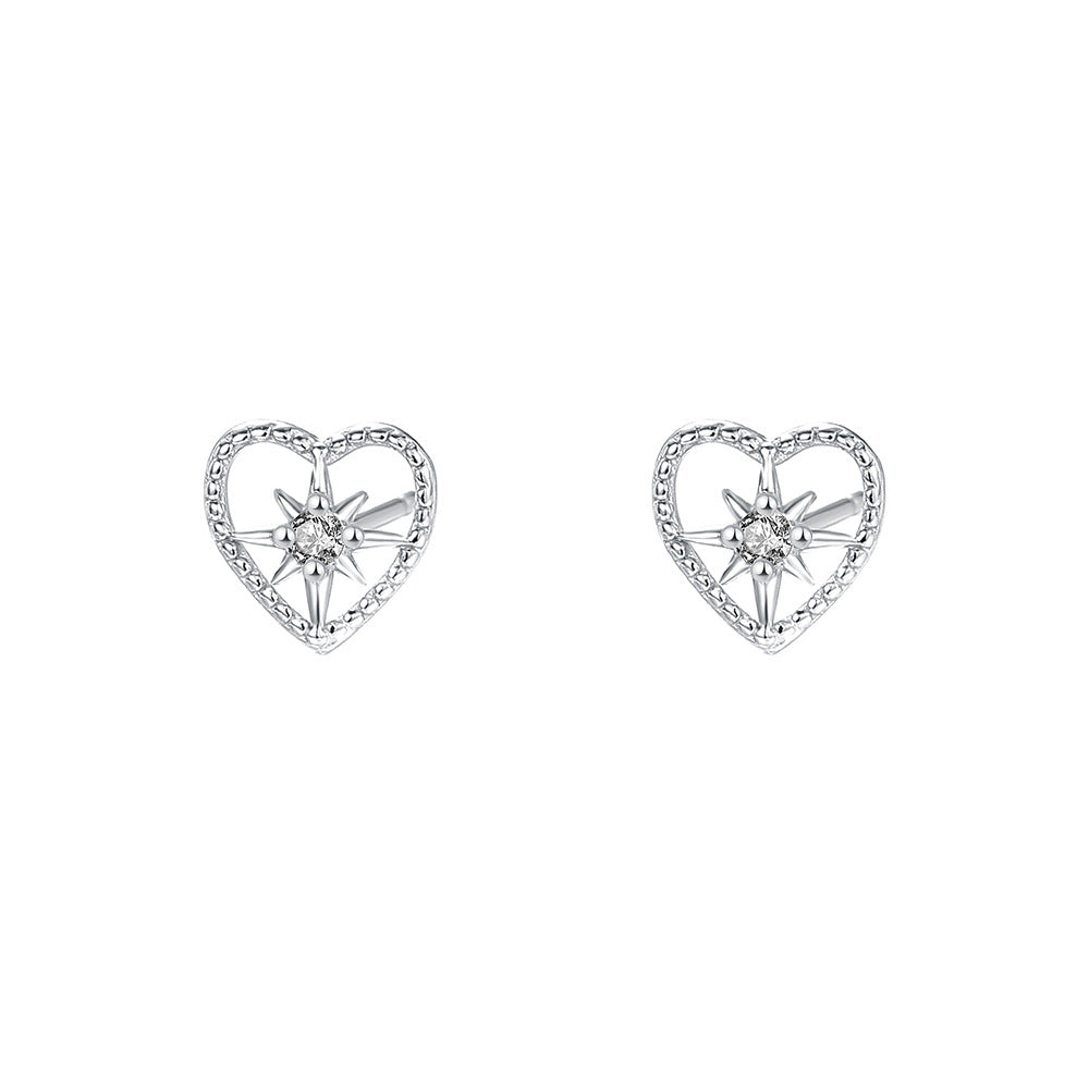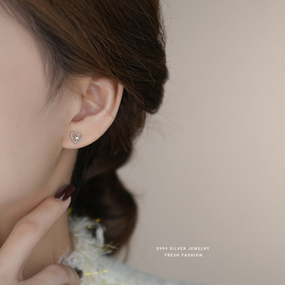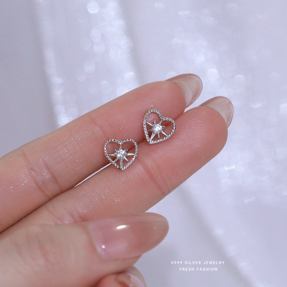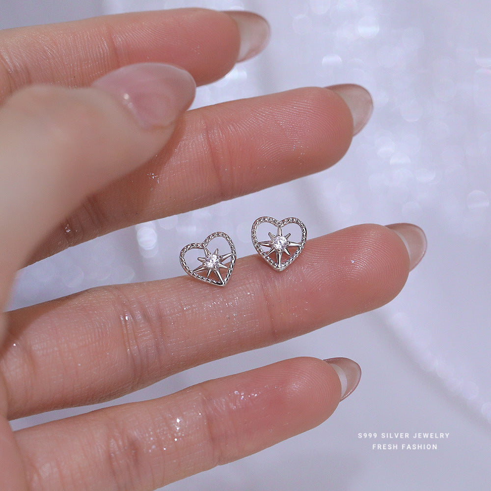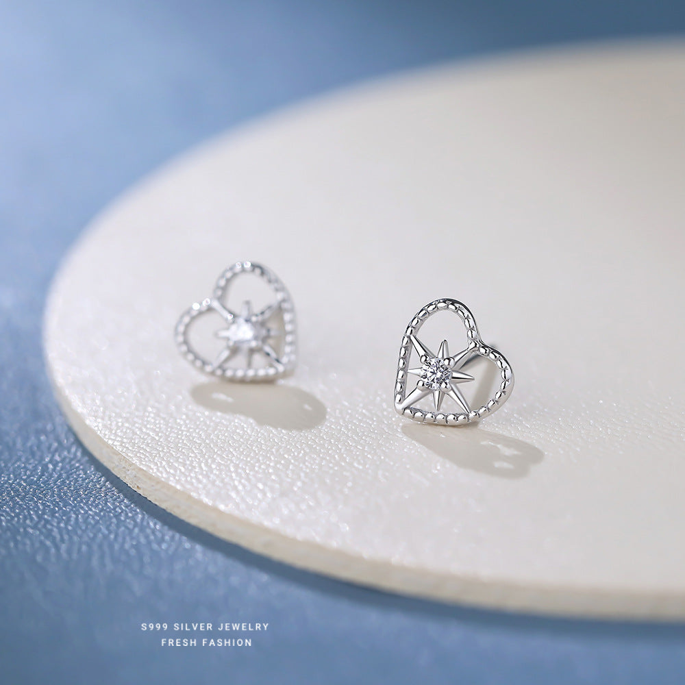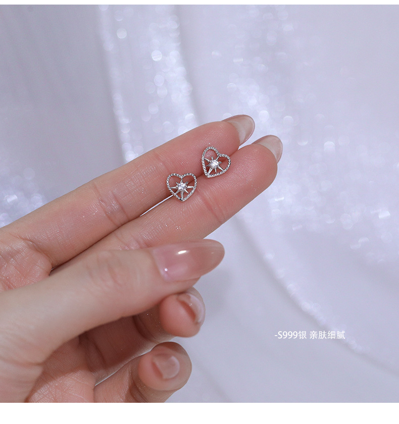 C廠 韓系閃鑽八芒星鏤空愛心s999純銀耳環 批發 折扣@洽客服 25.08.W3「E5221」