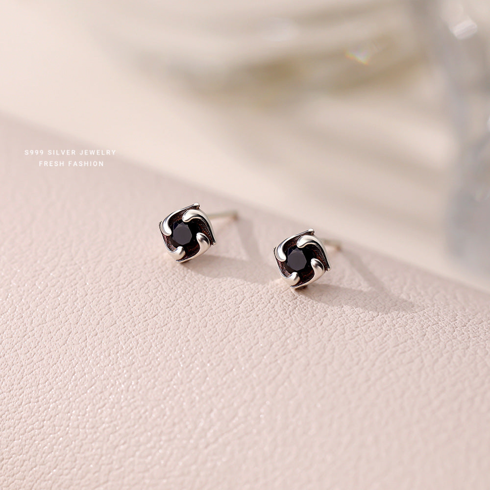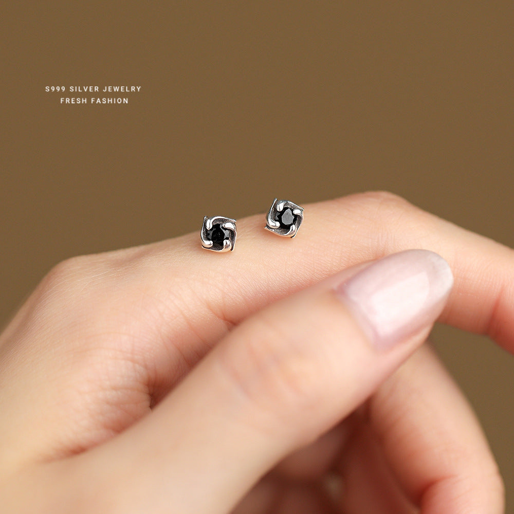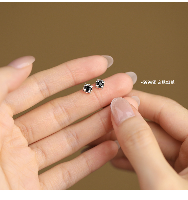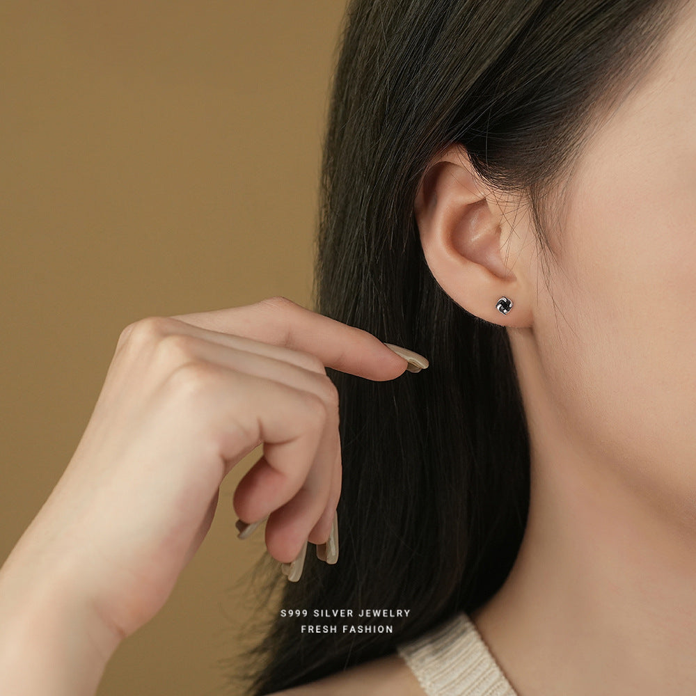 C廠 韓系黑鋯石螺旋風車S999純銀耳環 批發 折扣@洽客服 25.09.W3「E5459」