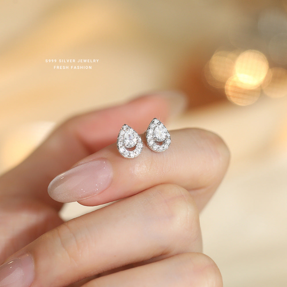 C廠 韓國韓系輕奢雙層水滴鋯石S999純銀耳環 批發 折扣@洽客服 25.10.W1「E5504」