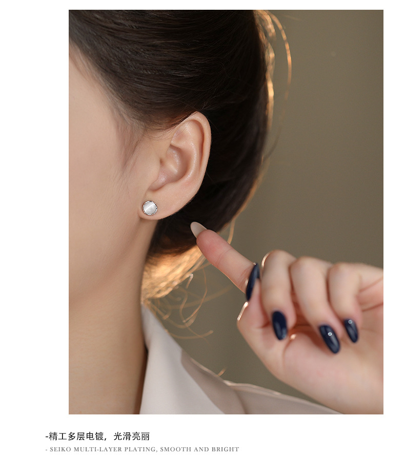C廠 韓國韓版白貓眼石S999純銀耳環 批發 折扣@洽客服 24.11.W2「E5619」