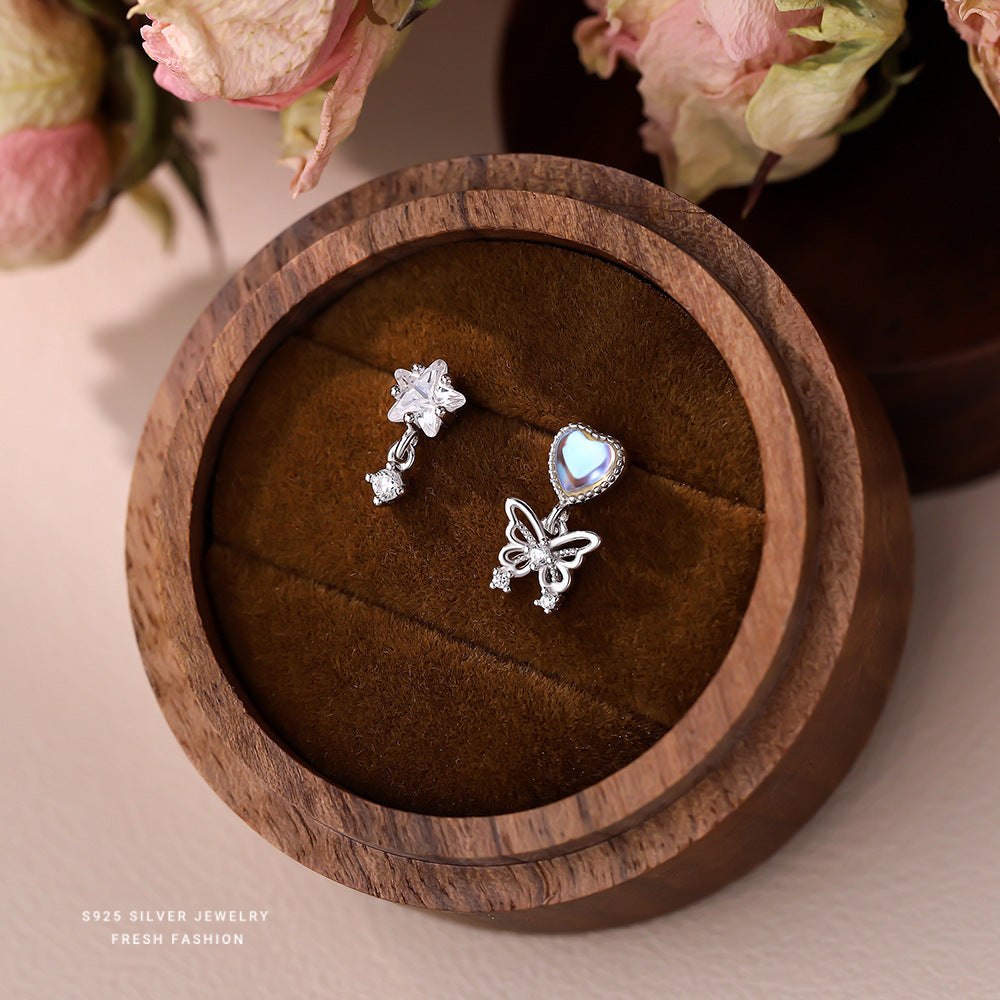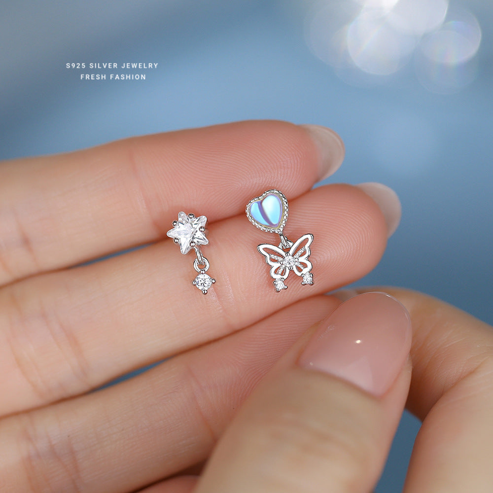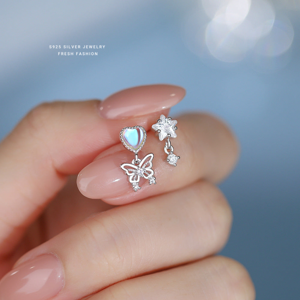 C廠 韓系幻彩愛心蝴蝶流蘇S925純銀耳環 批發 折扣@洽客服 25.09.W3「E5622」