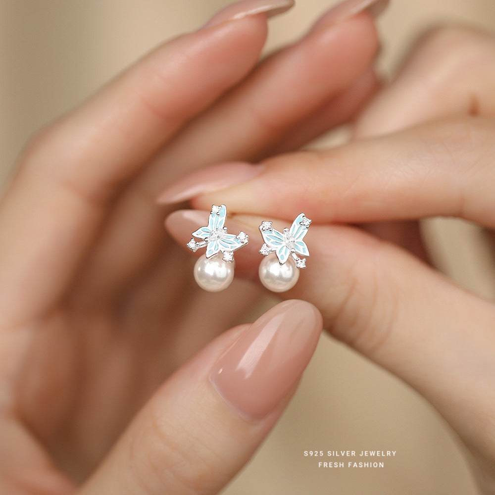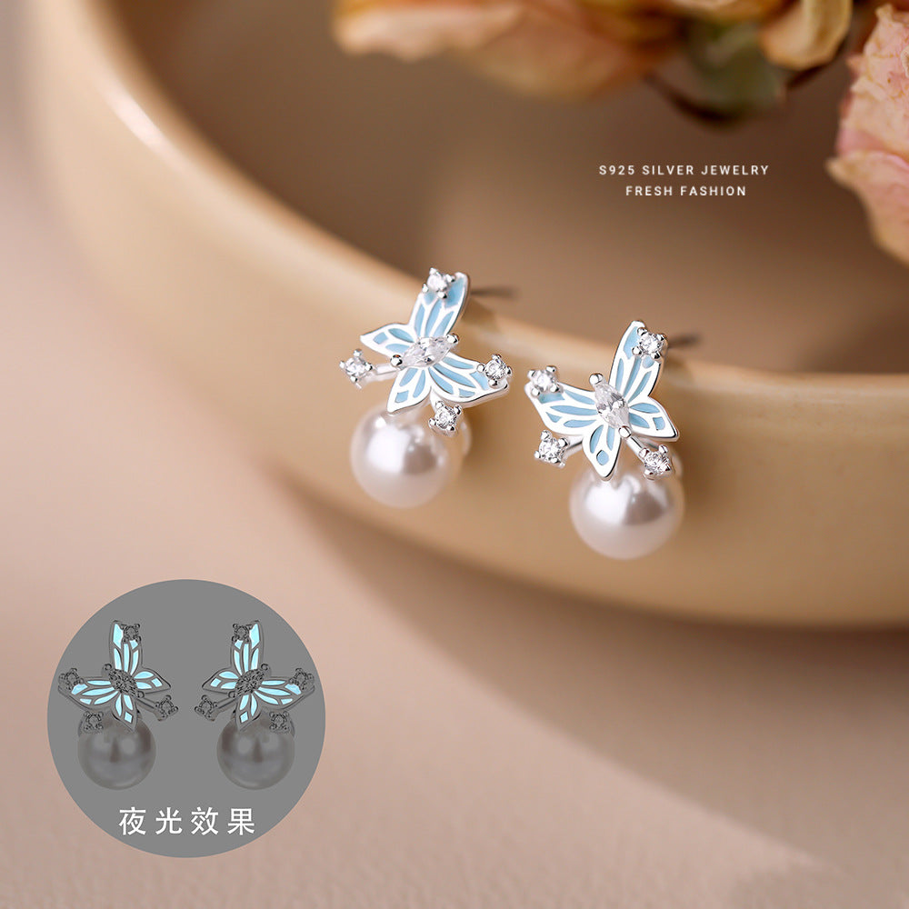 C廠 韓國韓版藍色夜光蝴蝶S925純銀耳環 批發 折扣@洽客服 25.10.W5「E5654」