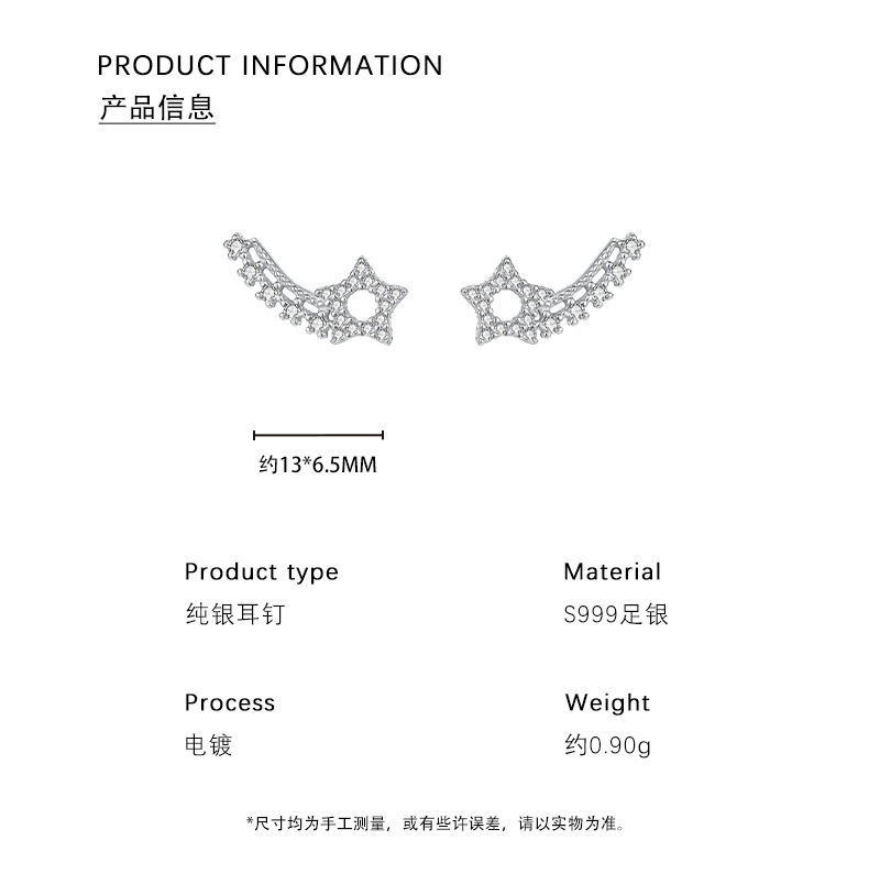 C廠 韓國韓版流星軌跡五角星S999純銀耳環 批發 折扣@洽客服 25.11.W1「E5698」