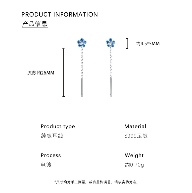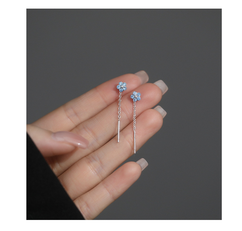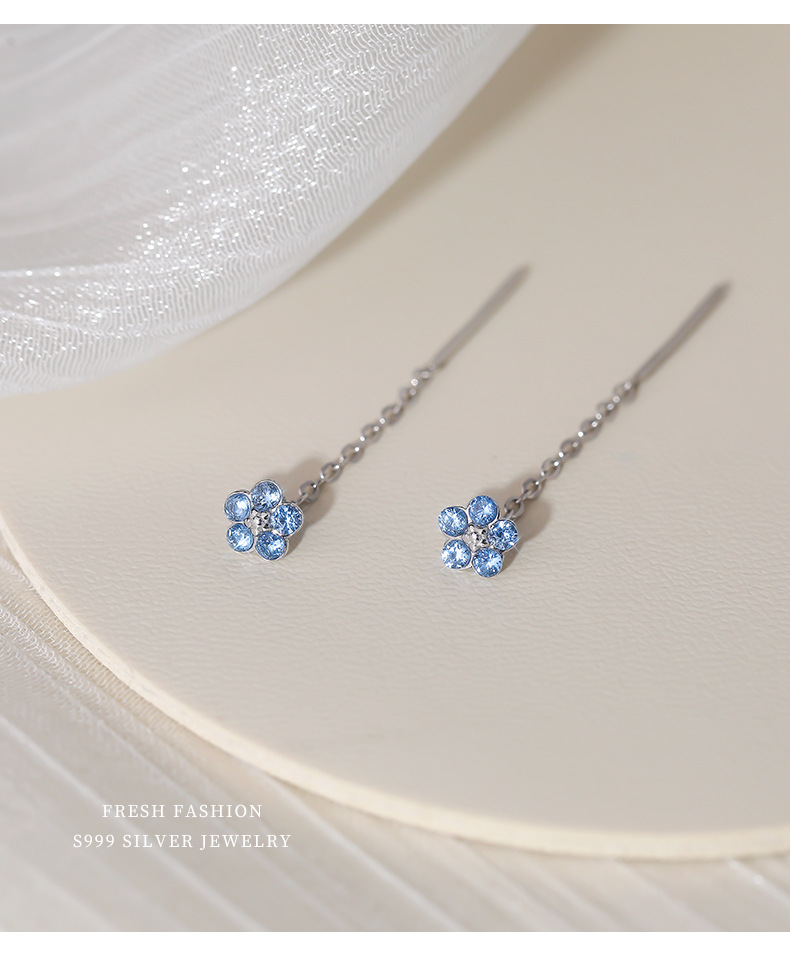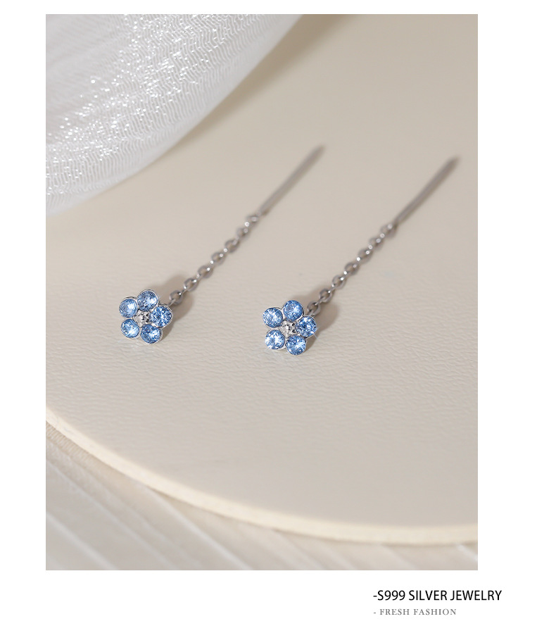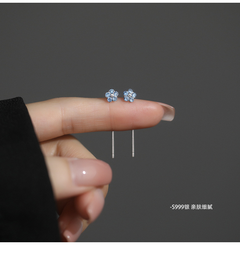 C廠 韓國韓版清新藍色花朵S999純銀耳線 批發 折扣@洽客服 24.11.W2「E5717」