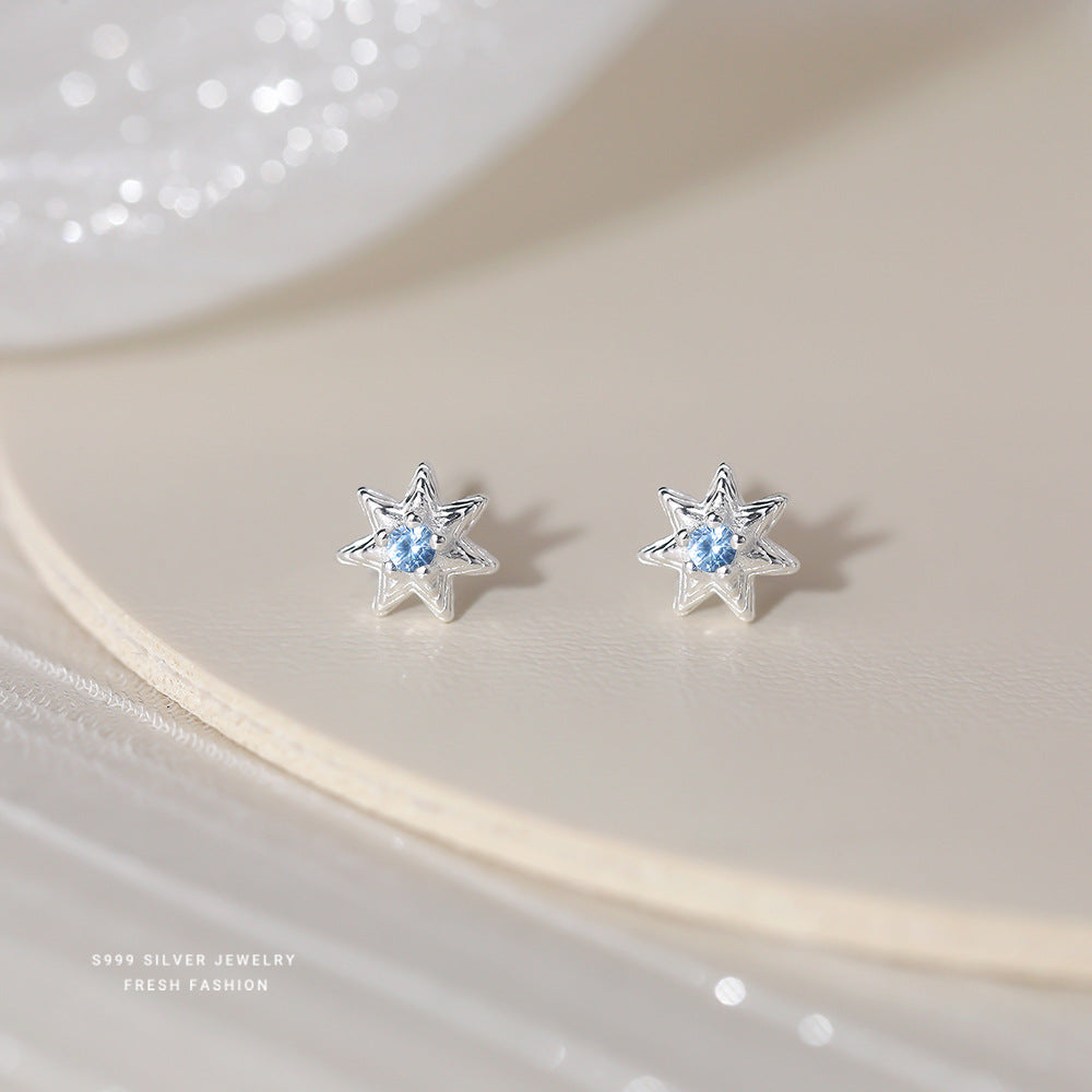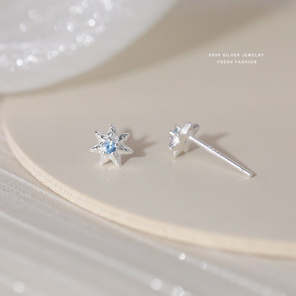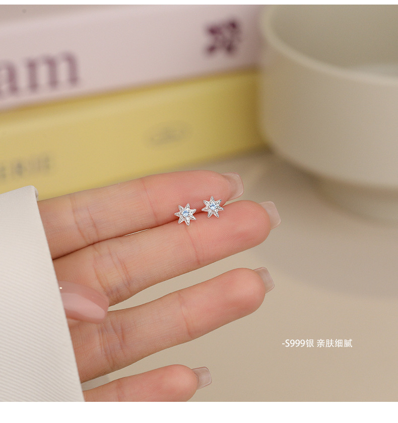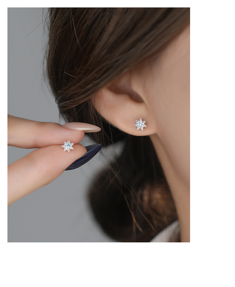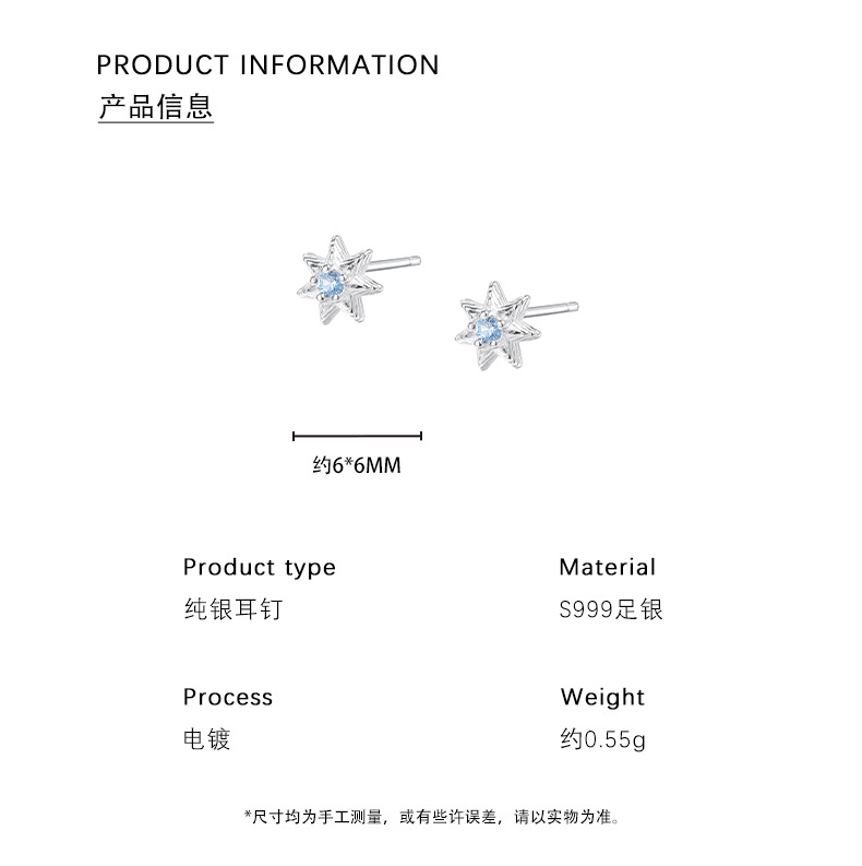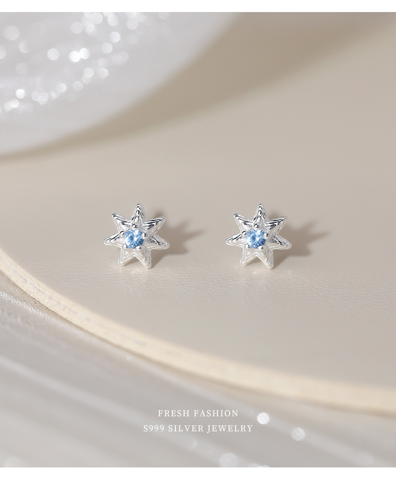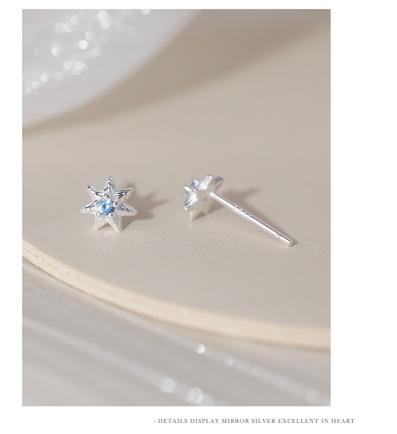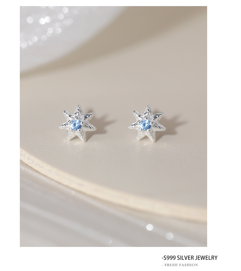 C廠 韓國韓版淺藍七芒星S999純銀耳環 批發 折扣@洽客服 25.11.W1「E5718」